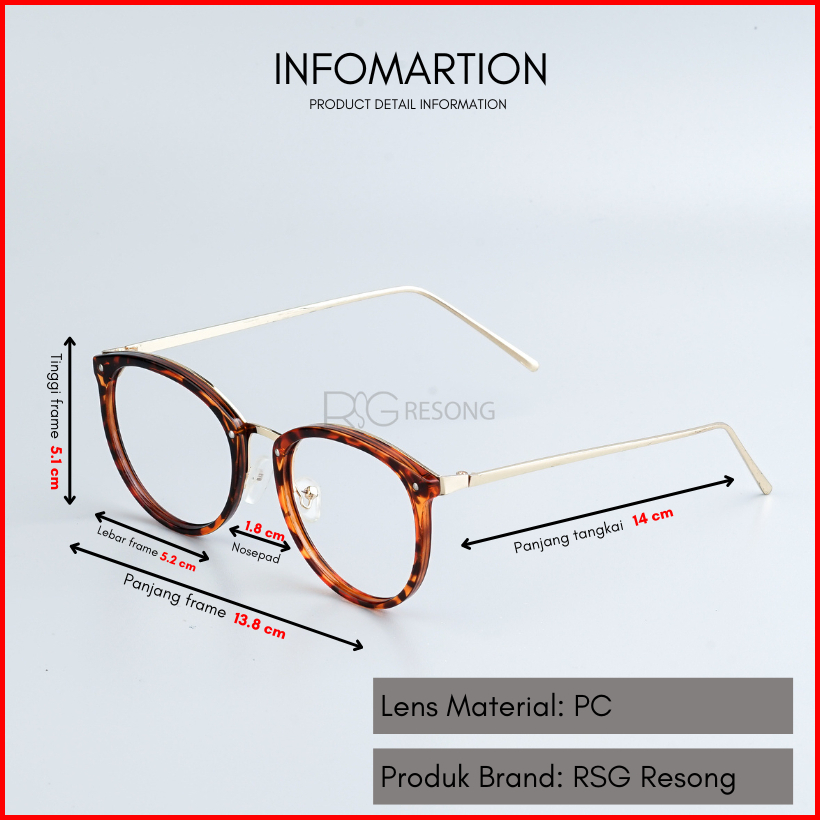 Resong Kacamata Bulat Wanita Normal Minus Cylinder Baca Lensa Blueray Photocromic Bluecromic