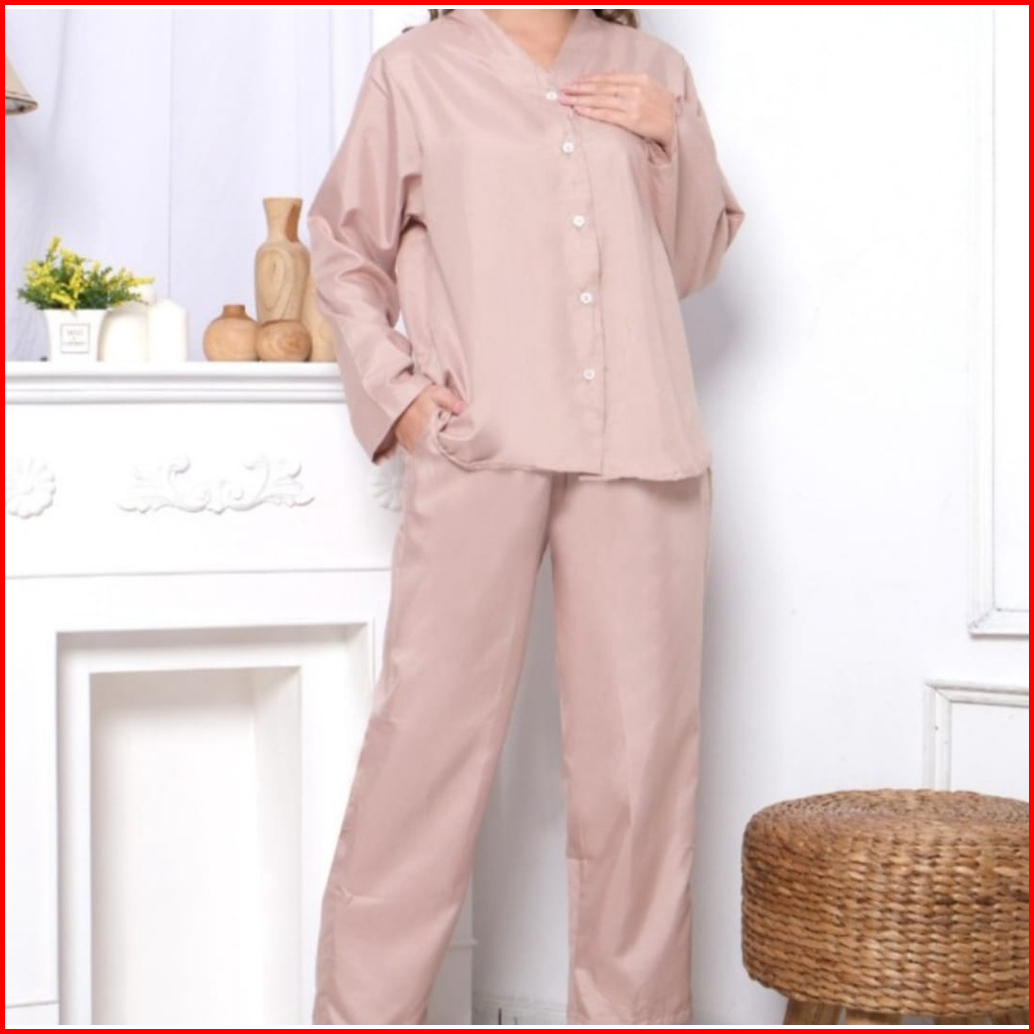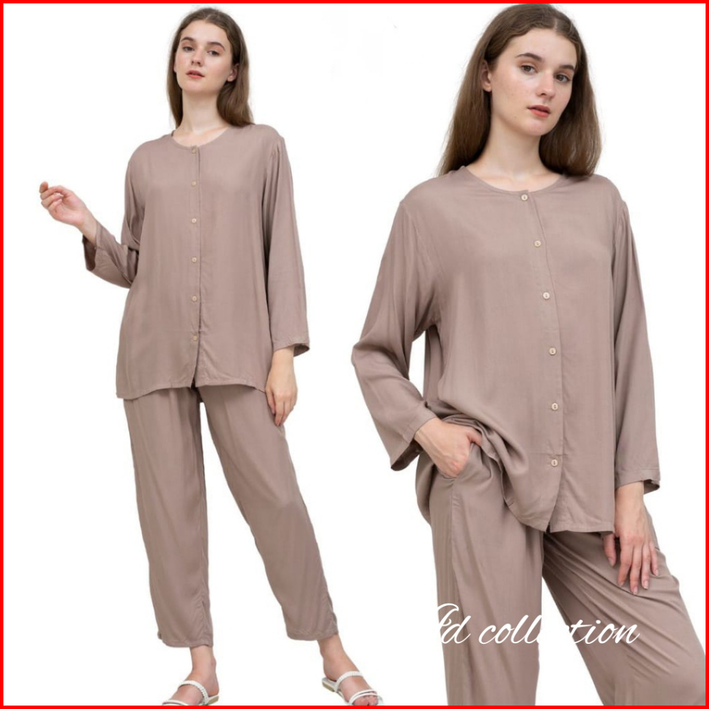 Piyama Wanita Rayon Baju Tidur Wanita Lengan Panjang Piyama Wanita Rayon Kemeja Wanita Lengan Panjang Setelan Busui Polo
