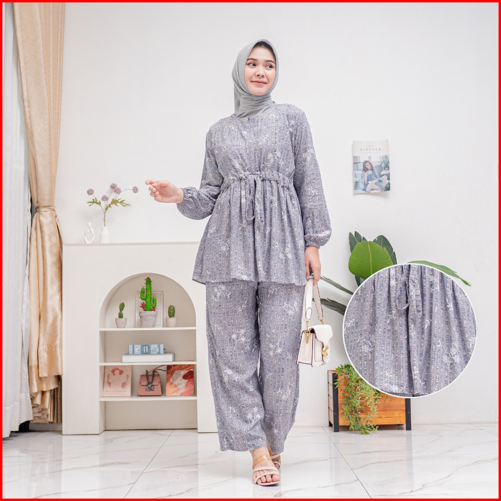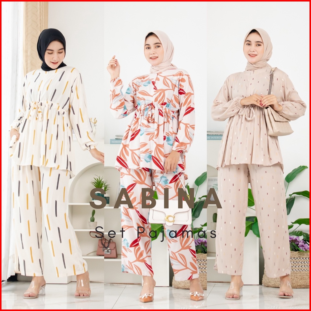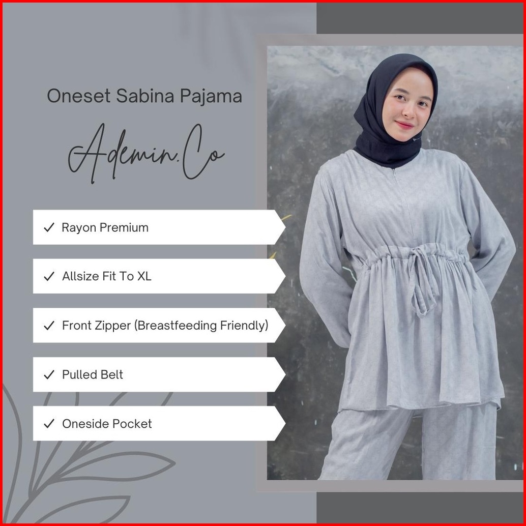 Sabina Set Pajamas Serut Busui Rayon Premium By Ademin.co Setelan Piyama Lengan Panjang Wanita
