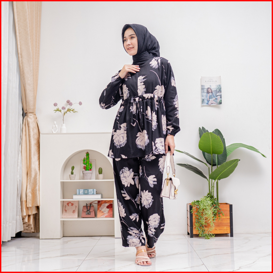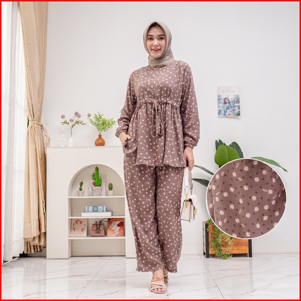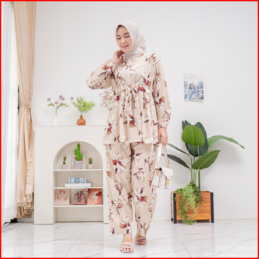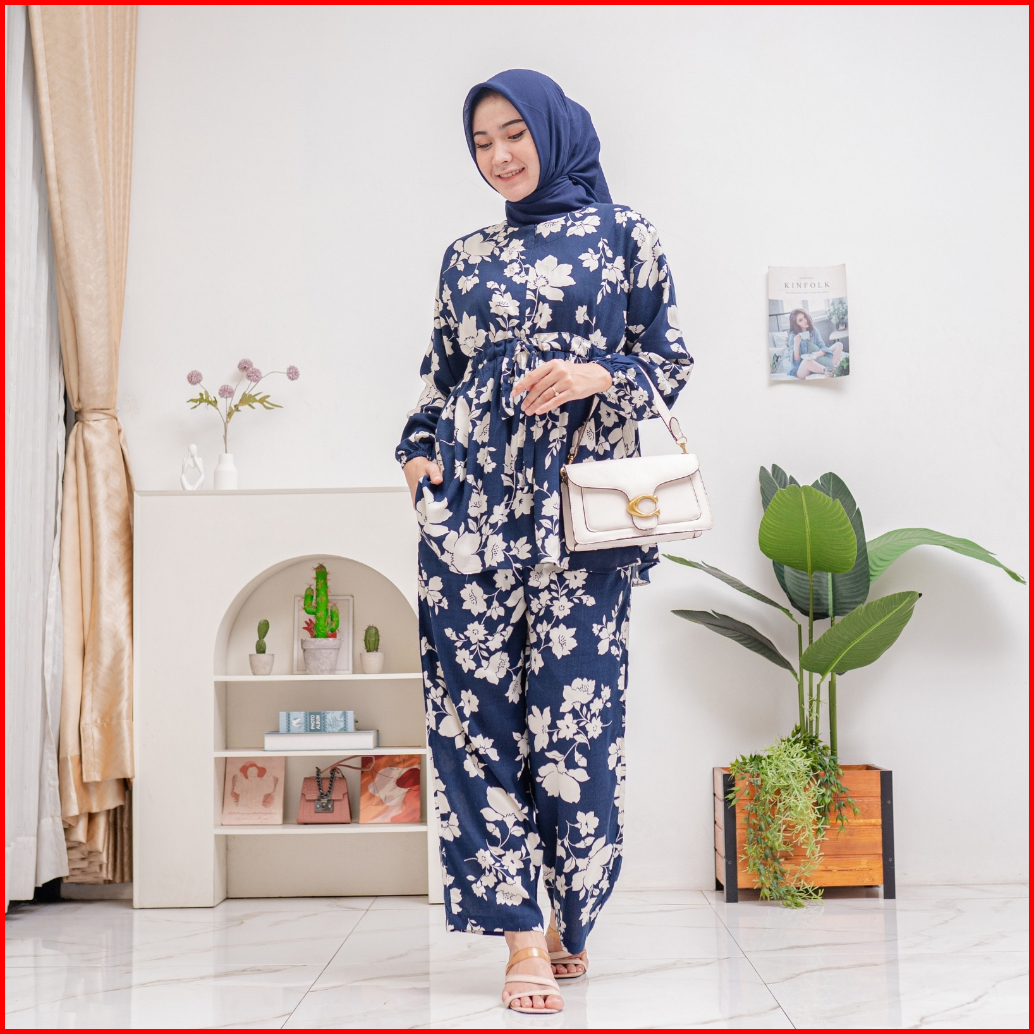 Sabina Set Pajamas Serut Busui Rayon Premium By Ademin.co Setelan Piyama Lengan Panjang Wanita