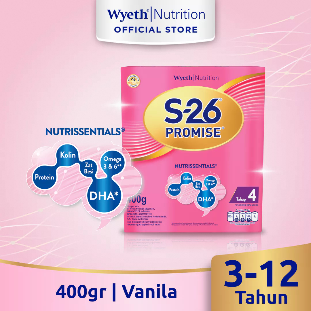S26 Procal Tahap 3 (1-3 Tahun)/ Promise Tahap 4 Vanila (3-12 Tahun), Kotak 400gr Susu Formula