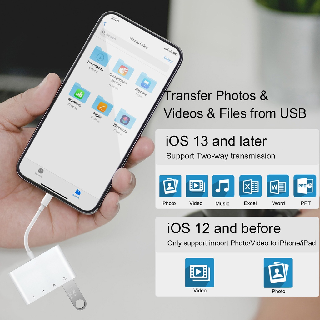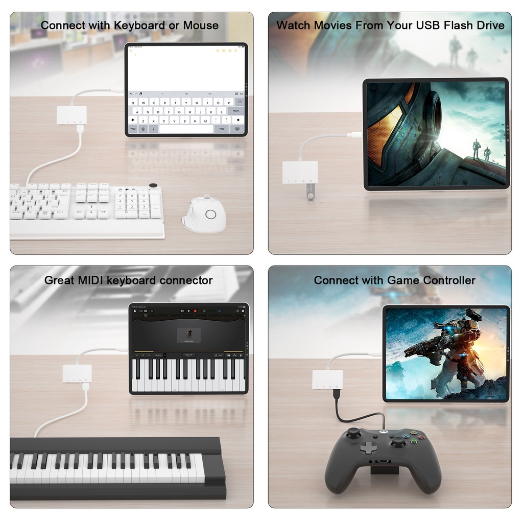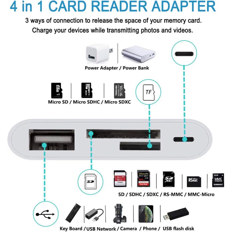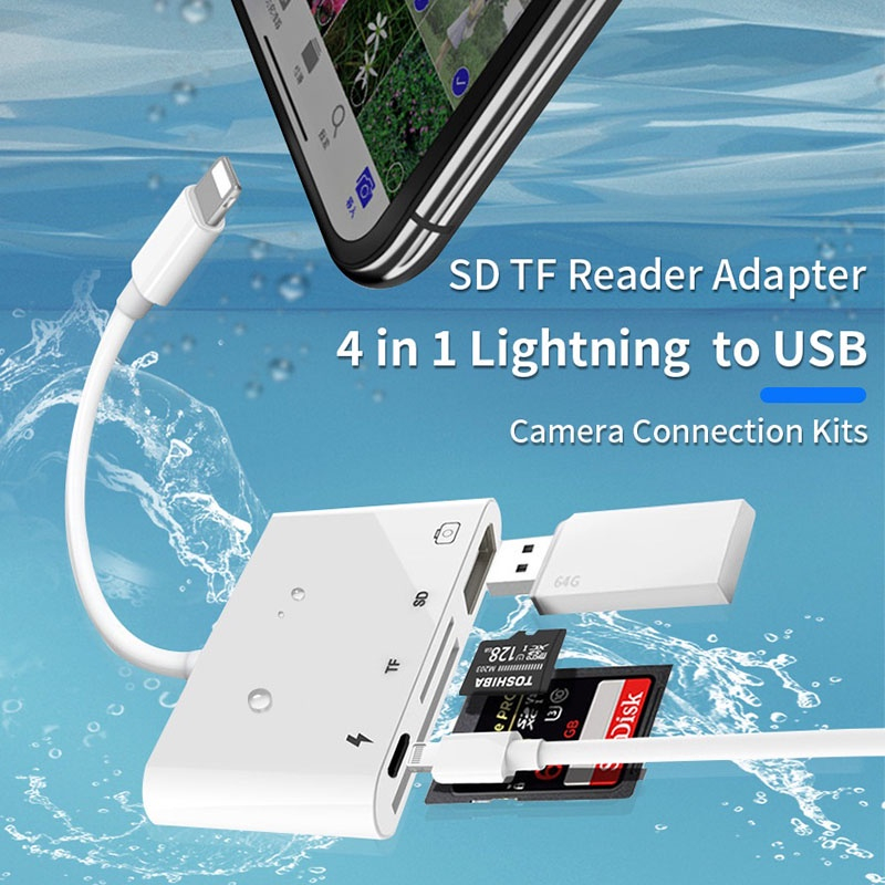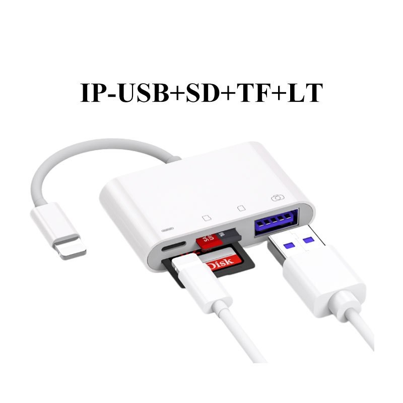 Lightning 4 in 1 Card Reader Lighting OTG Adapter Card Reader Micro/Usb/Typec/Sd/Tf/Otg/Flash Drive/Keyboad/Mouse