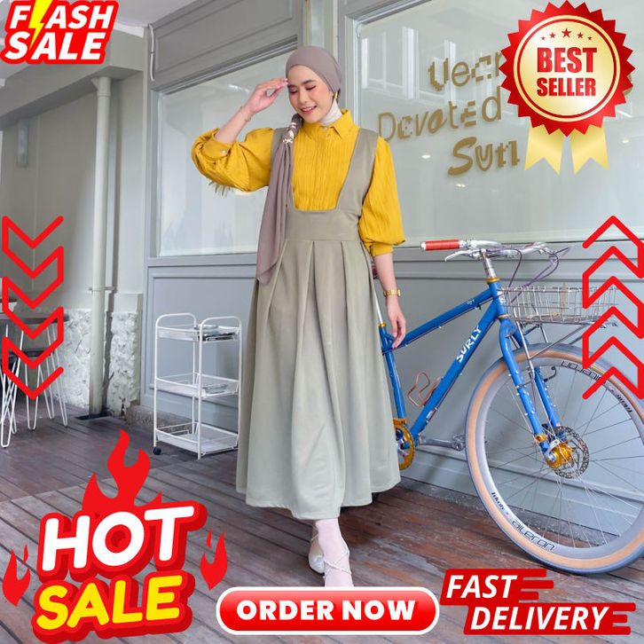 Overall Dress Saba Overall Rok Kekinian Dress Wanita Muslim Mybamus