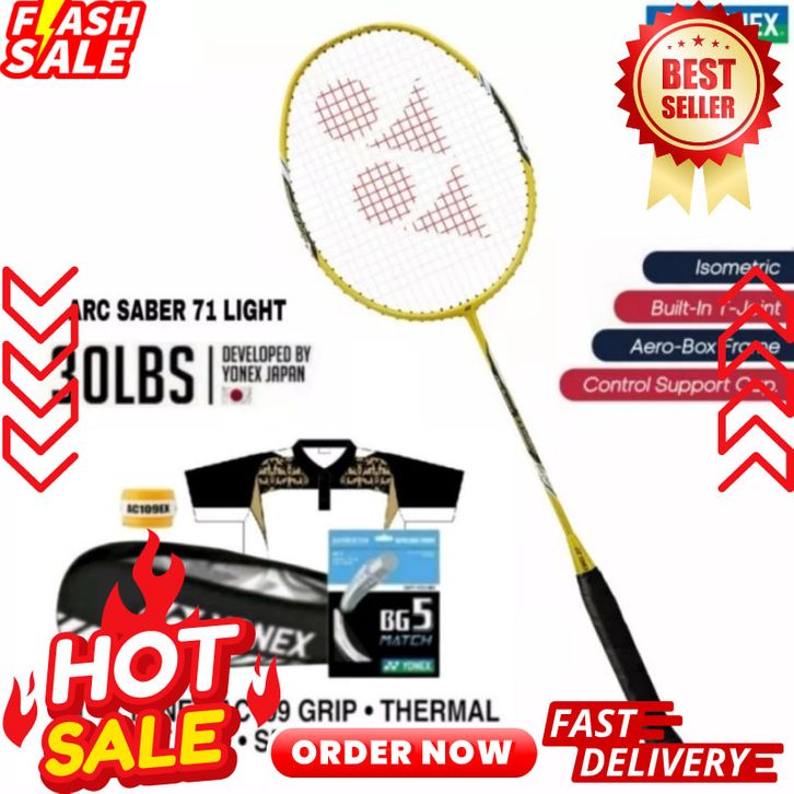 RAKET BADMINTON YONEX ARCSABER ARC SABER 71 LIGHT 5U G5 TARIKAN 30 LBS ORIGINAL GRATIS TAS RAKET BAJU KAOS