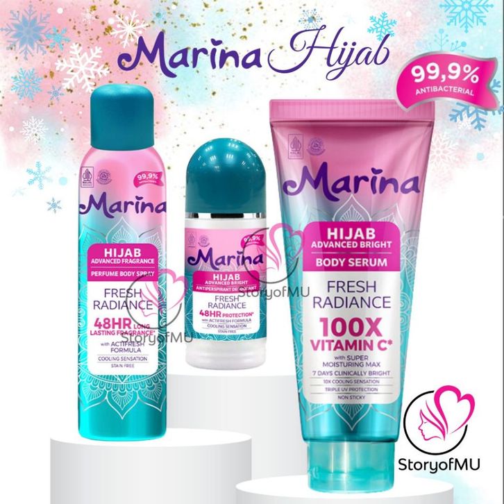 MARINA Hijab Series Fragrance Perfume Body Spray 150ml | Advanced Bright Antiperspirant Deodorant 50ml / OUTLET