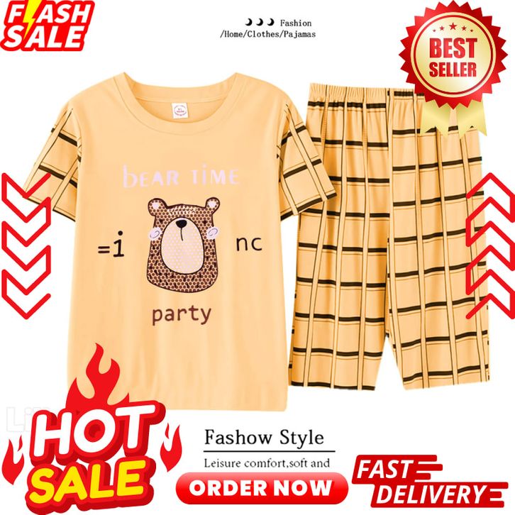 Lilipopid Baju Tidur Wanita 3 4 ALL SIZE STANDAR BEAR INC Piyama Setelan BabyDoll Kaos Celana Pendek