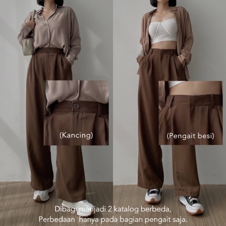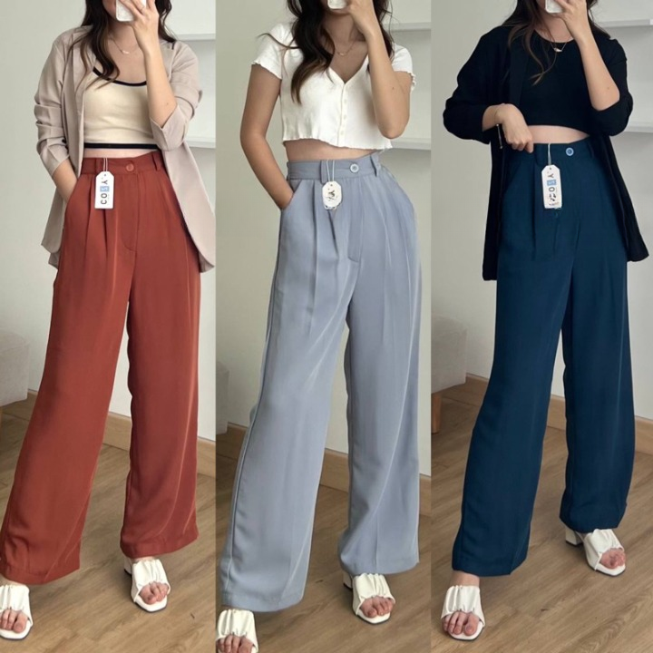 Loose Pants /celana panjang jumbo bigsize anti kusut culotte kerja kantor wanita pastel biru electric pink