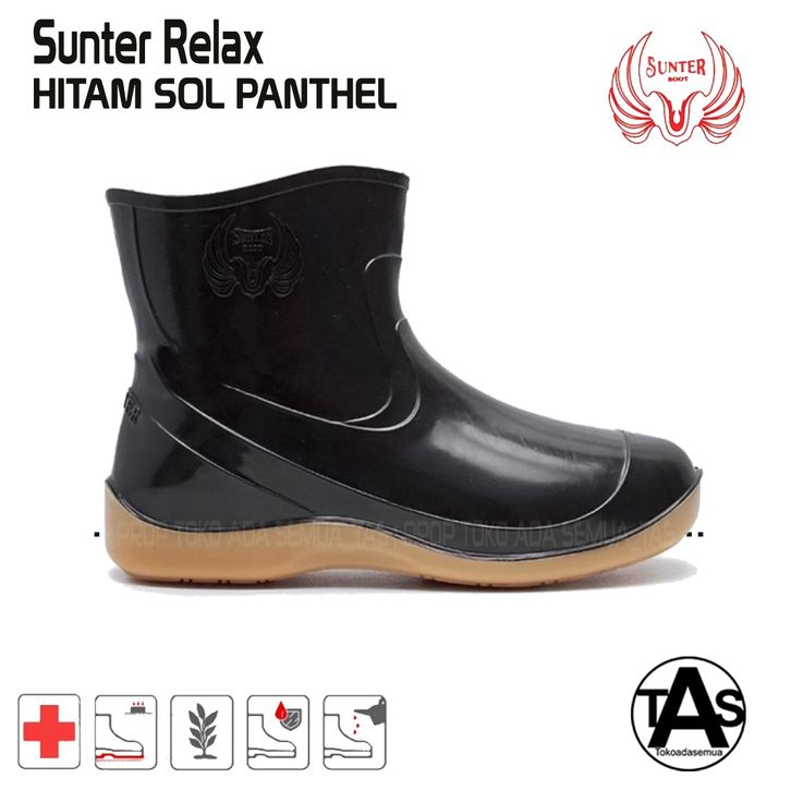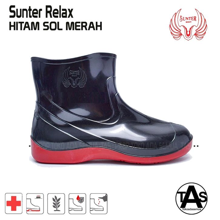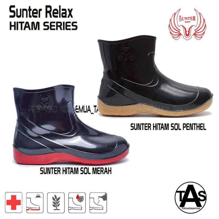 Sepatu Boot Karet Pendek Sunter Hitam SERIES / HITAM Sol Merah / HITAM SOL PANTHEL / Sepatu Boots Karet termurah