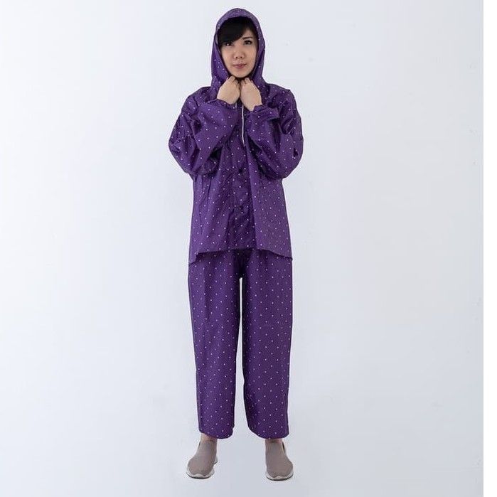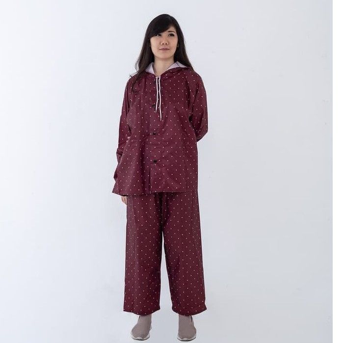 Jas Hujan Wanita Setelan Jaket Dan Celana Polkadot Raincoat Mantel Hujan