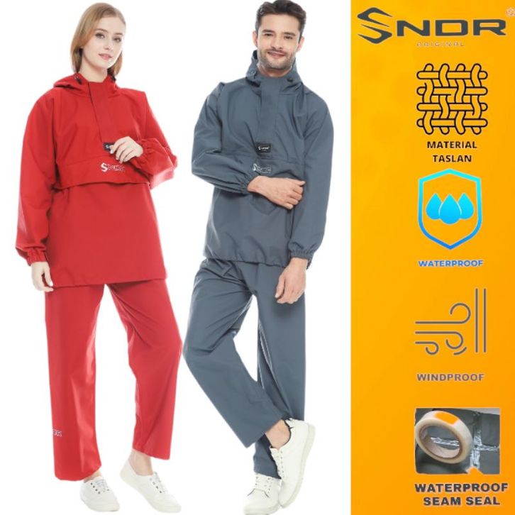 Jas Hujan SNDR Taslan Jas Hujan Saku Kangguru Pria Wanita Dewasa Anti Air Bahan 100 Taslan SNDR