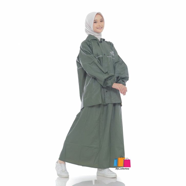 Masela Jas Hujan Wanita Rok Setelan Baju dan Rok Dewasa Tebal Lentur Anti Rembes