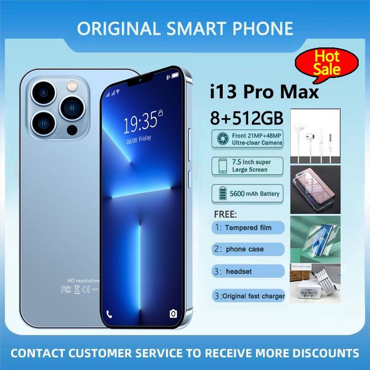 [Mall] HP TANPA DP i13 pro max 7.5inch Smartphone Layar Penuh RAM 8GB + ROM 512GB 5800mAh Layar HD 5G best seller