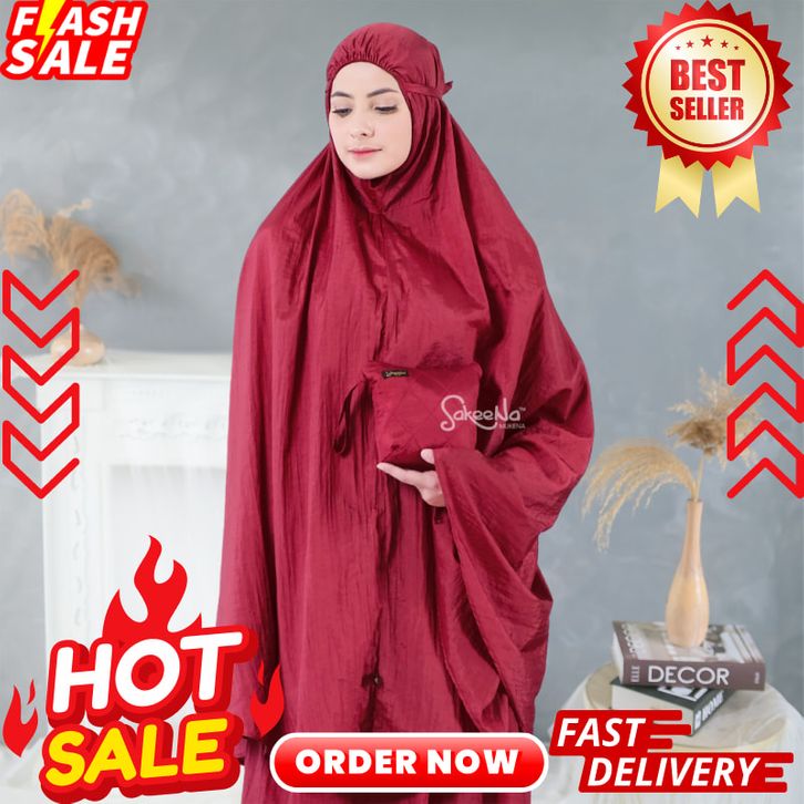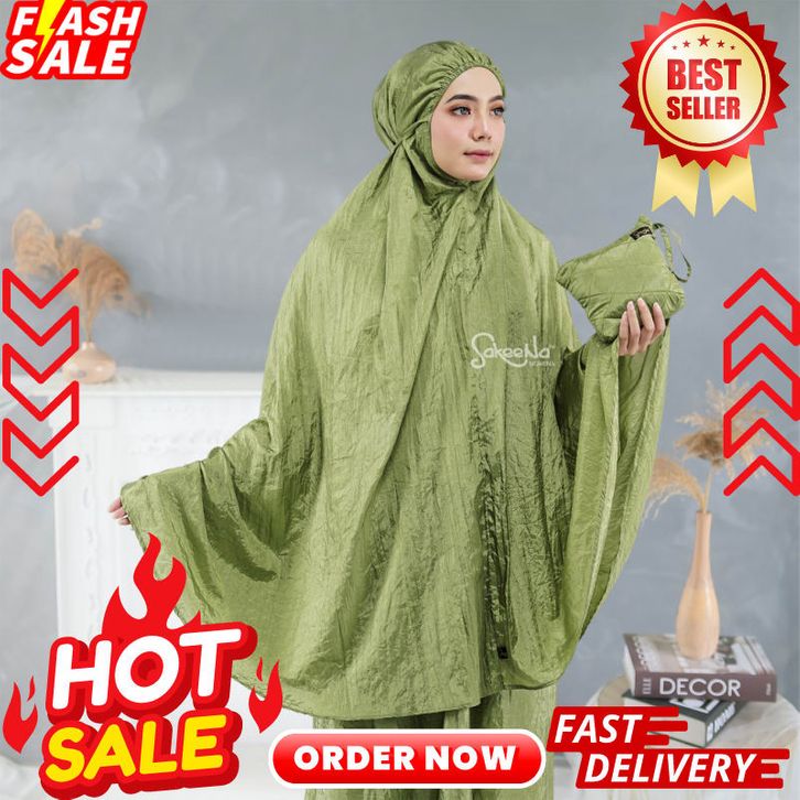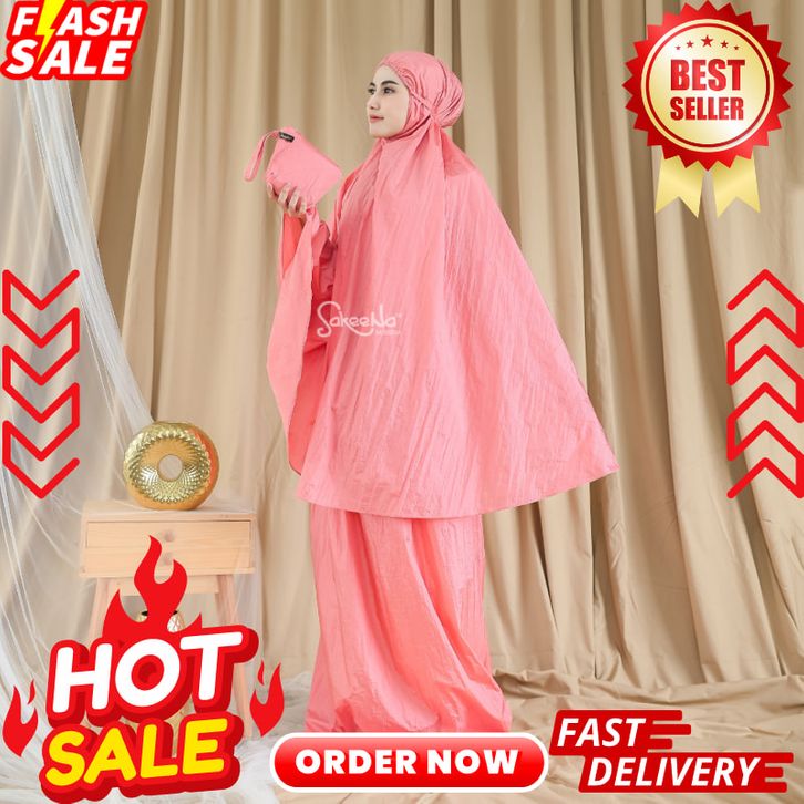 Mukena Sakeena Mukenah Dewasa Terbaru Bahan Parasut Premium Traveling Jumbo Free Tas
