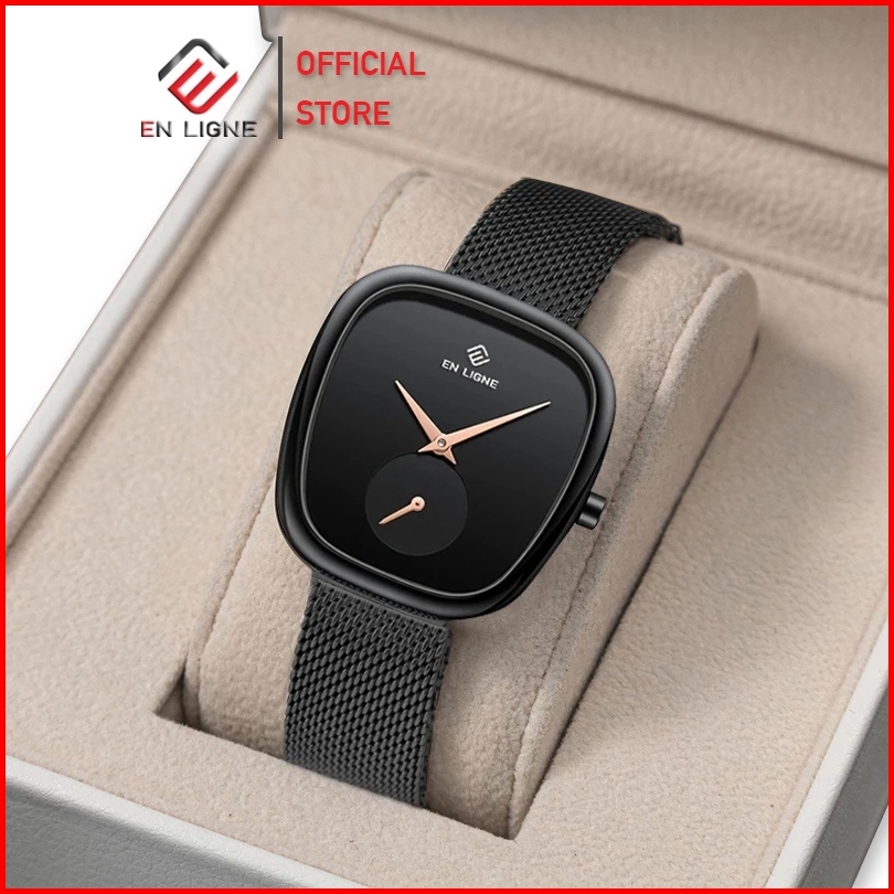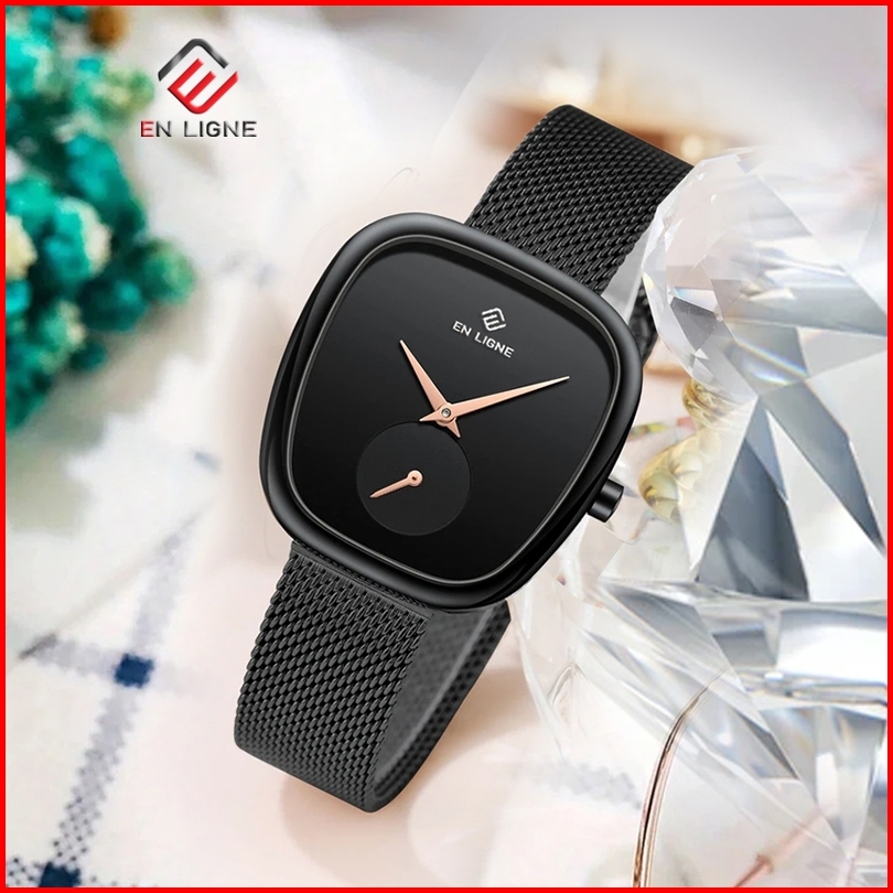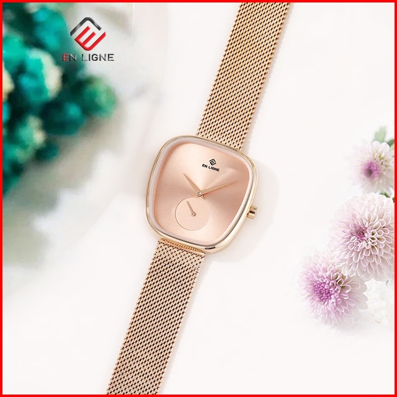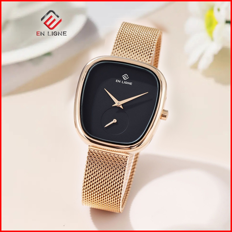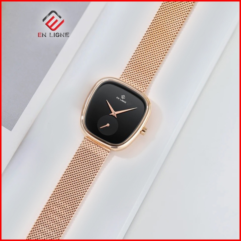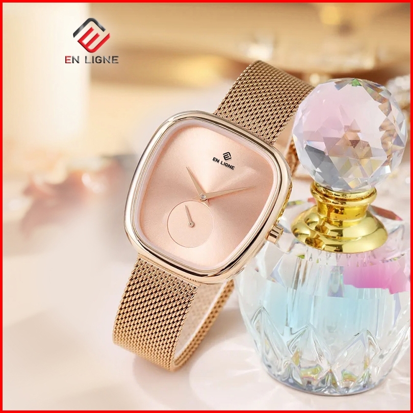 En Ligne - Jam Tangan Wanita Quartz Model Kotak Oval Stainless Tali Rantai Pasir El5988