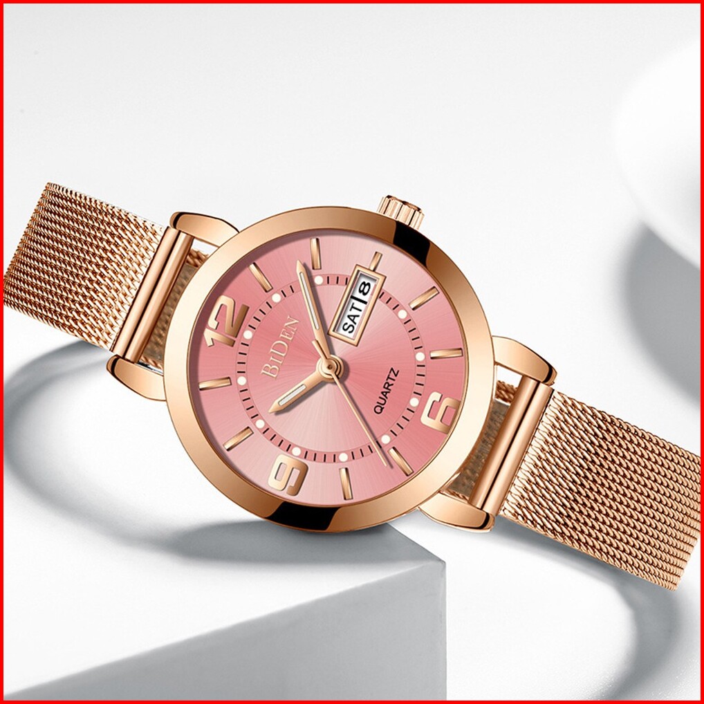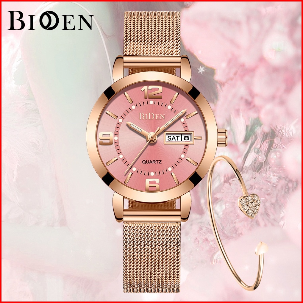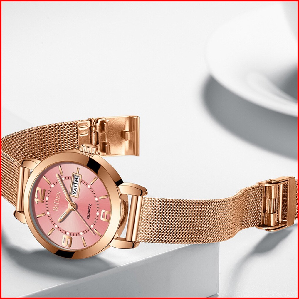 Biden Jam Tangan Wanita Santai Mode Tali Jala Anti Air Kuarsa Otomatis Date Jam Tangan Cewek