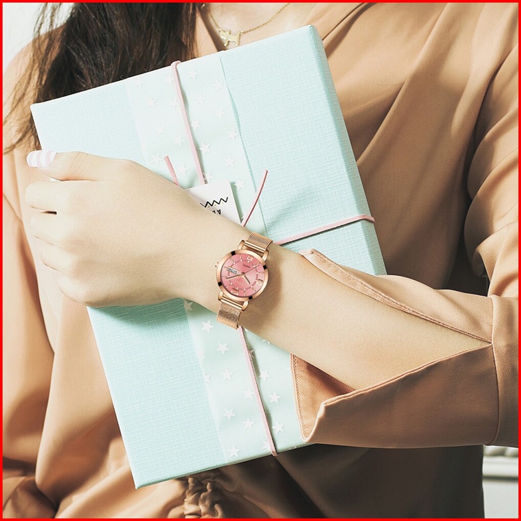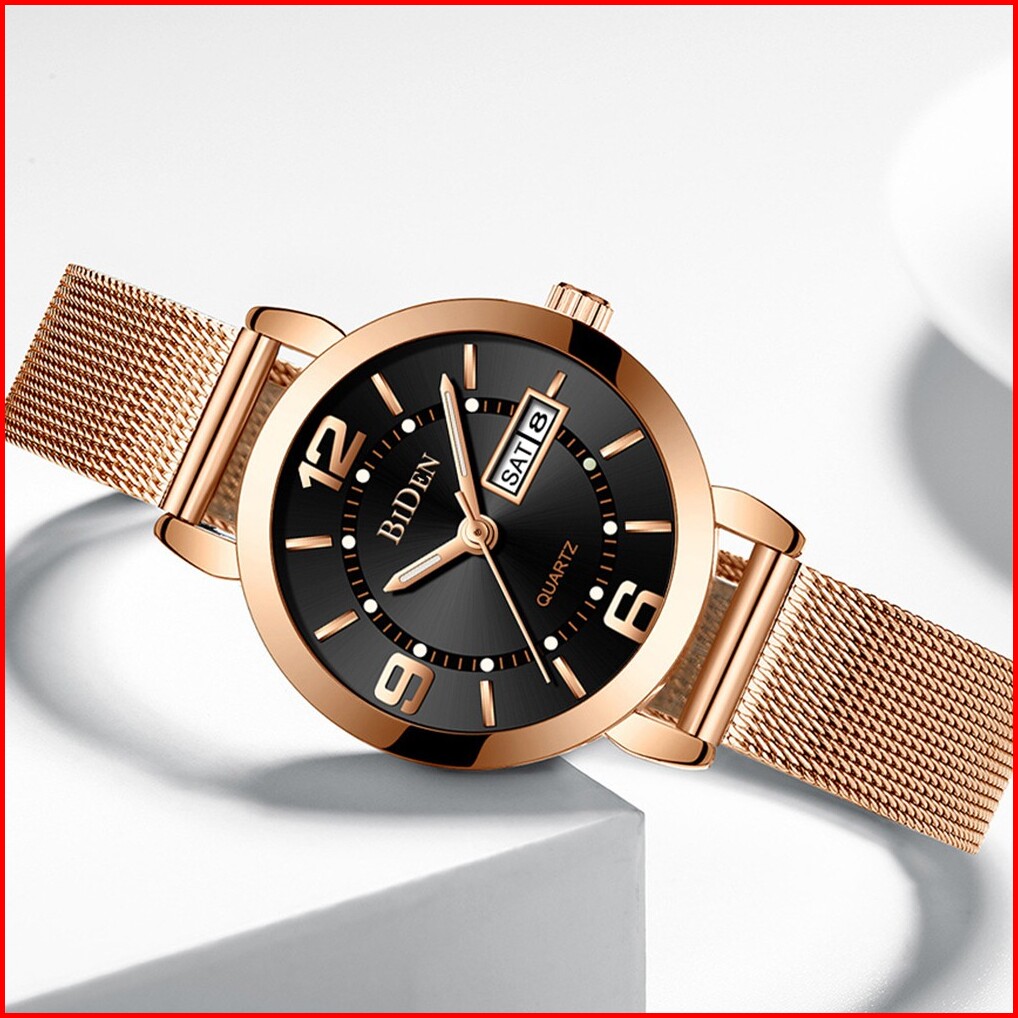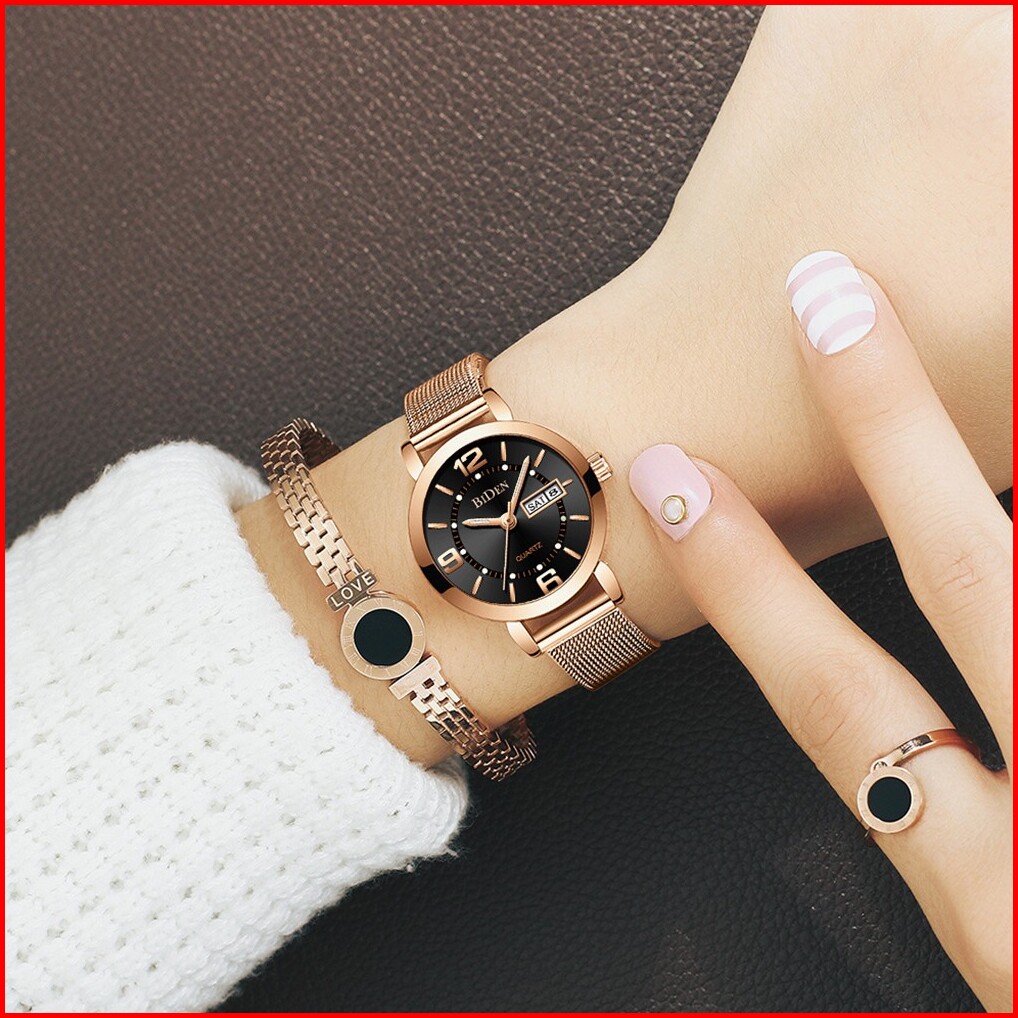 Biden Jam Tangan Wanita Santai Mode Tali Jala Anti Air Kuarsa Otomatis Date Jam Tangan Cewek