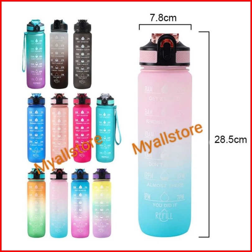 Botol Viral 1000ml Tumbler Tritan Gradasi 1 Liter Tempat Minum Praktis Termurah