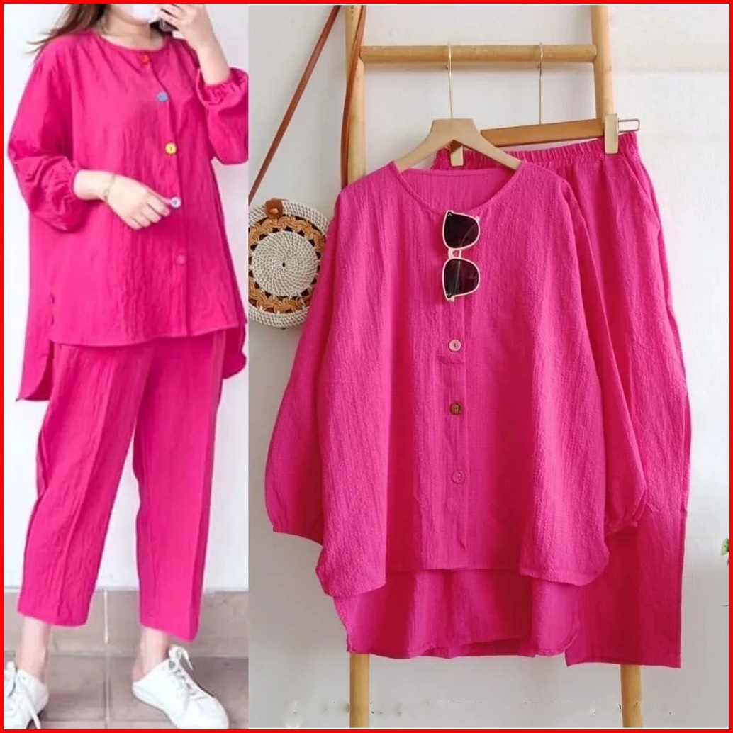 Vallina Outfit - Nikita One Set Baju Setelan Wanita Crinkle Premium Daily Casual Muslim Kekinian Terbaru