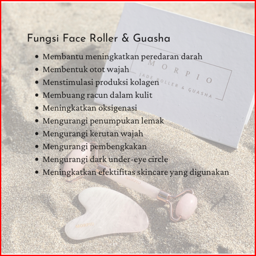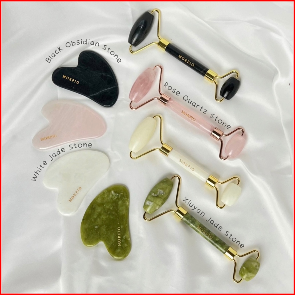 Morpio Guasha Face Roller 100 Batu Giok Asli Natural Stone Gua Sha Jade Rose Quartz Black Obsidian White Jade
