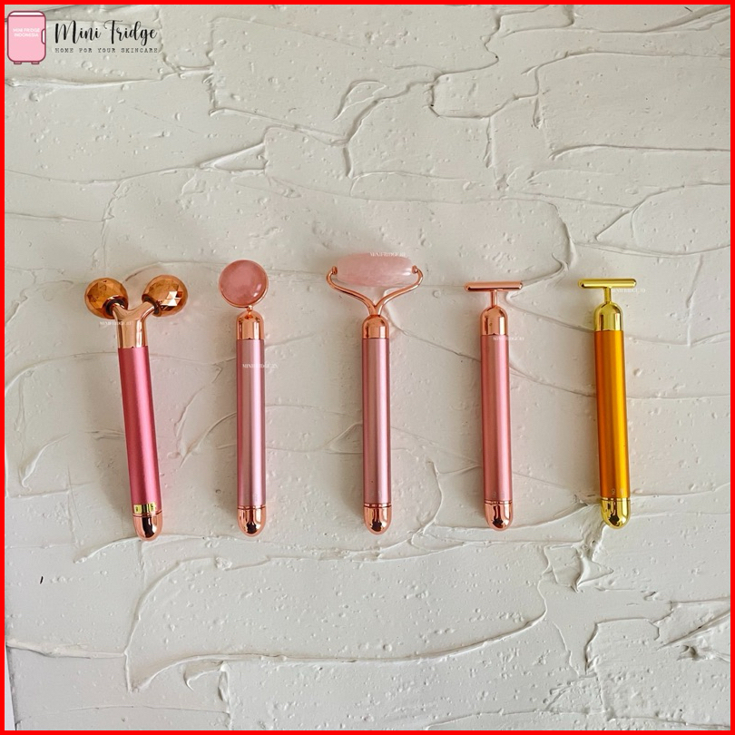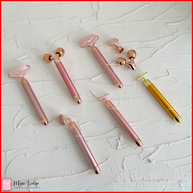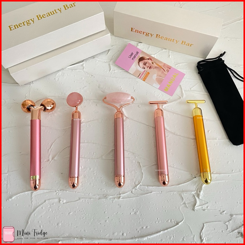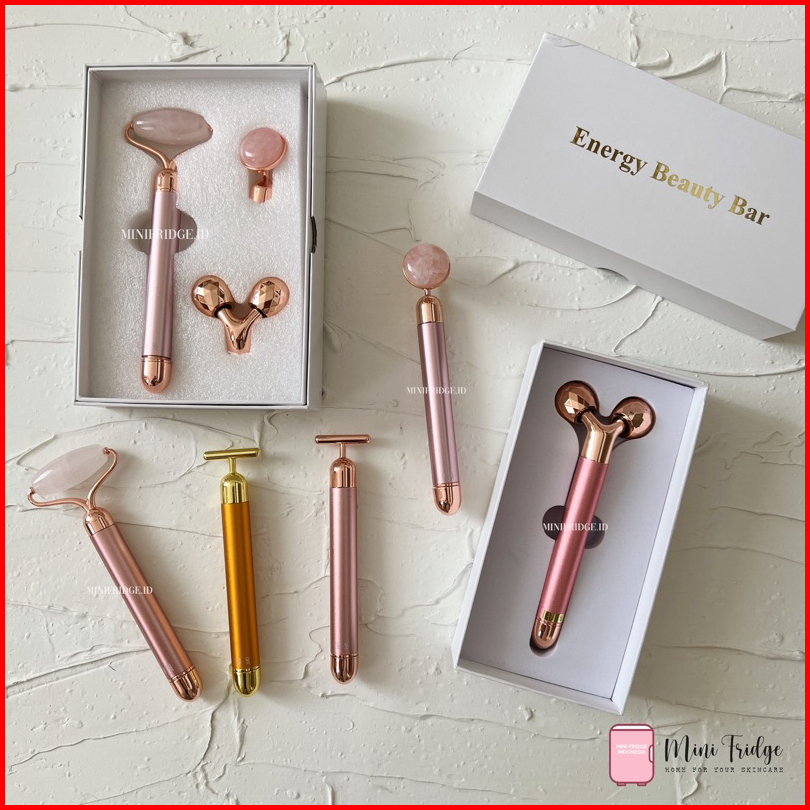 Minifridge Electric Energy Beauty Bar - Alat Pijat Wajah Rose Quartz Face Massager Jade Roller Elektrik Vibrasi Anti Agi