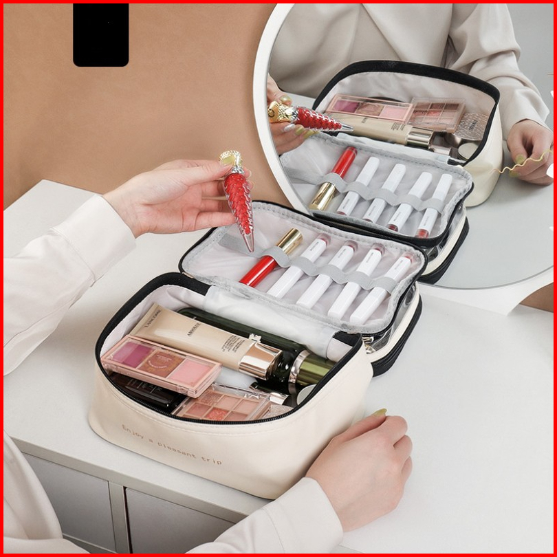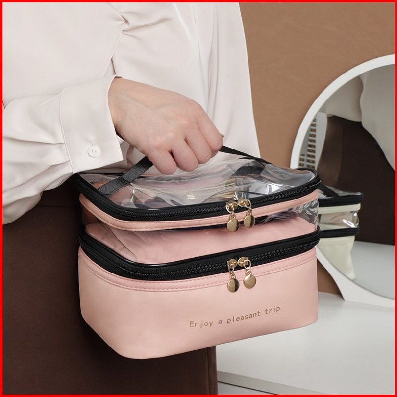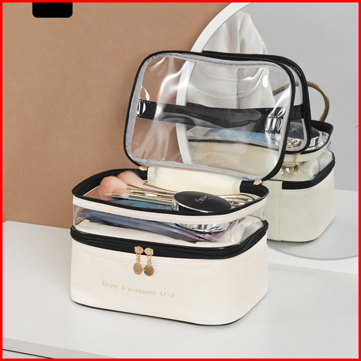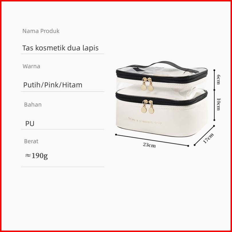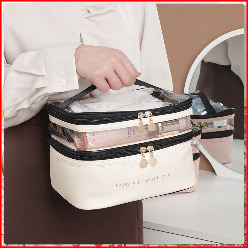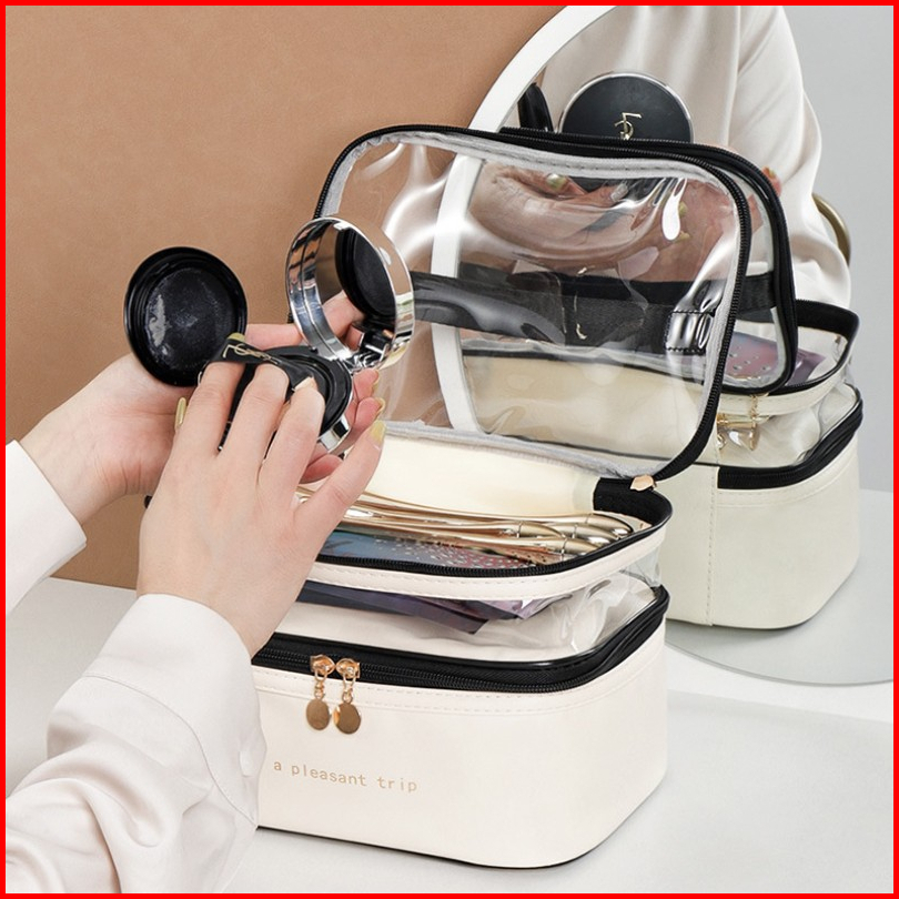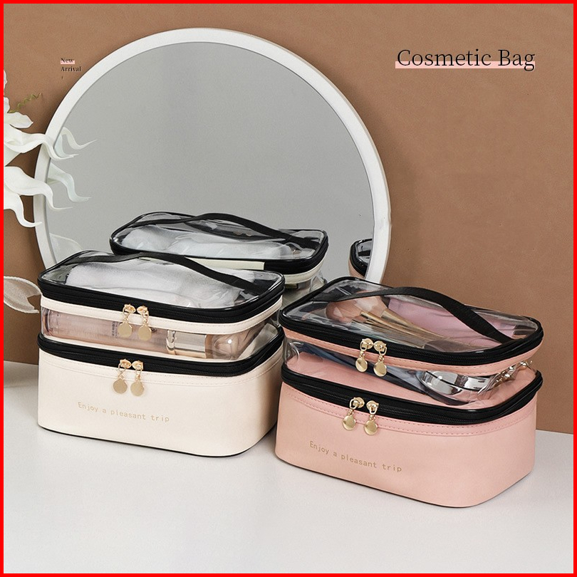 Tas Transparan 2 Lapis - Penyimpanan Tas Kosmetik - Tas Kosmetik Pu