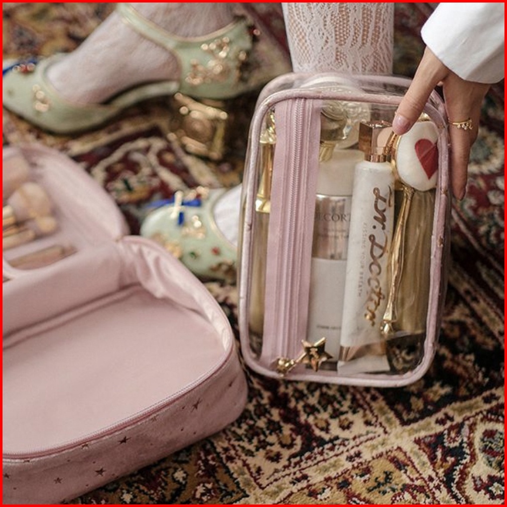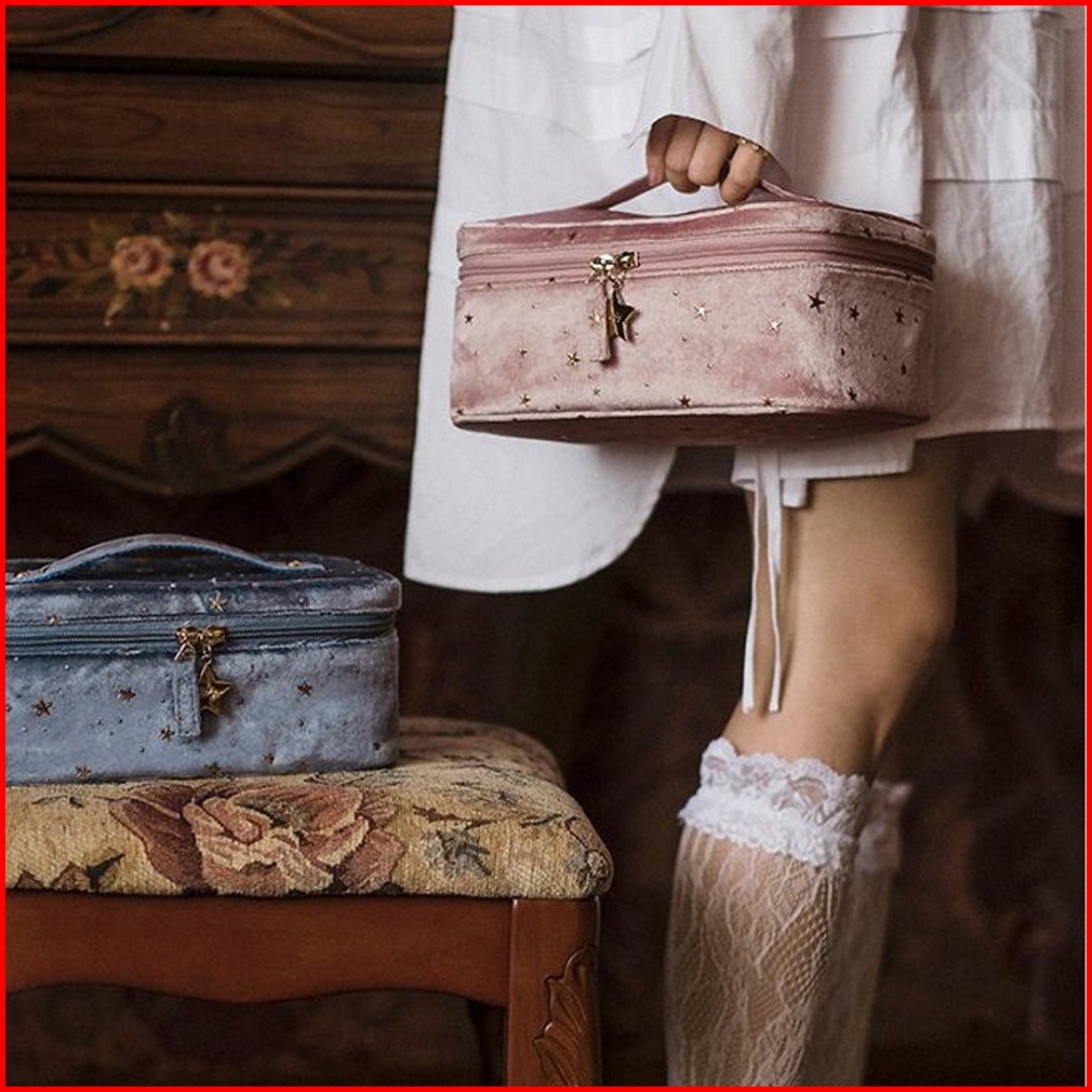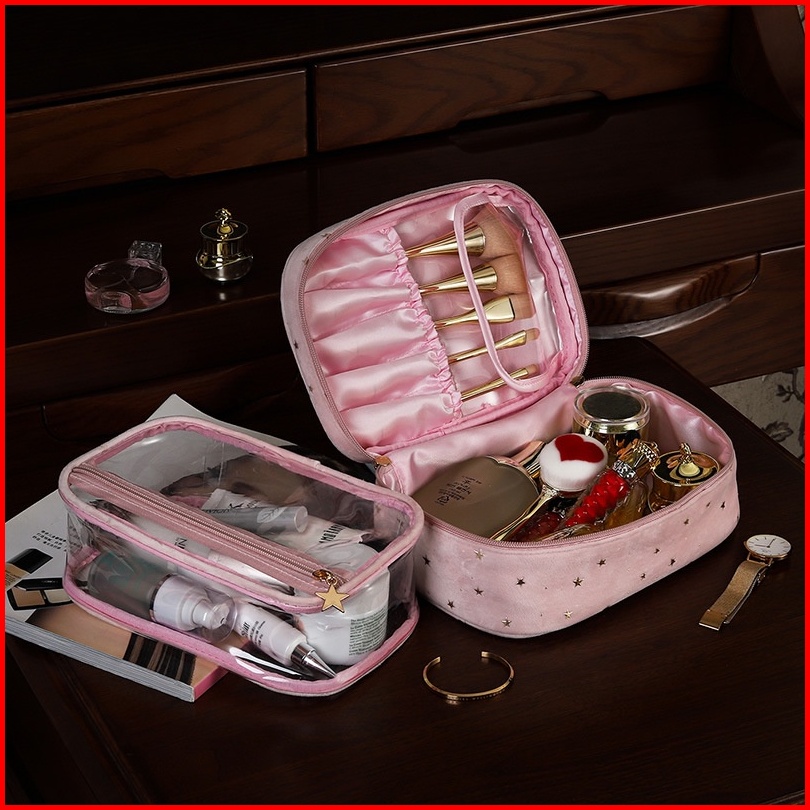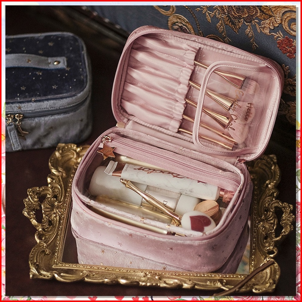 Pouch Make Up 2 In 1 Kain Beludru Make Up Organizer Tas Kosmetik Wanita Polos Tempat Alat Make Up Dan Cermin Kotak Make