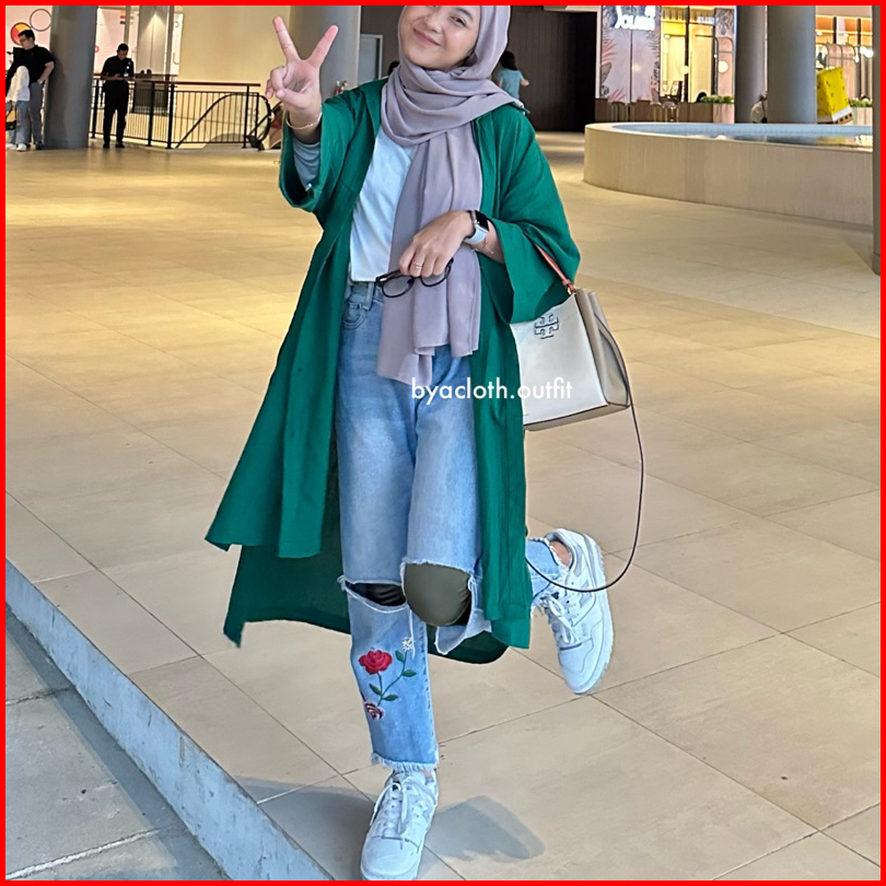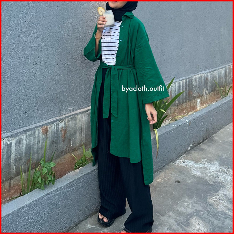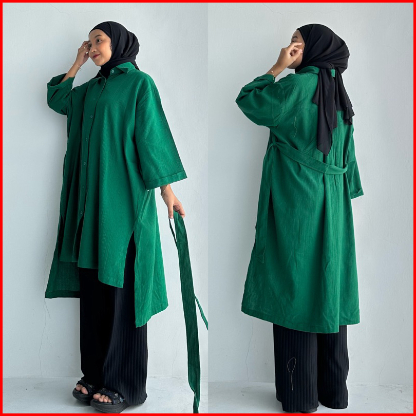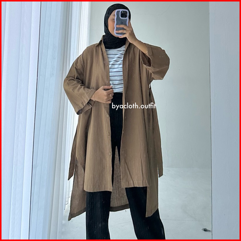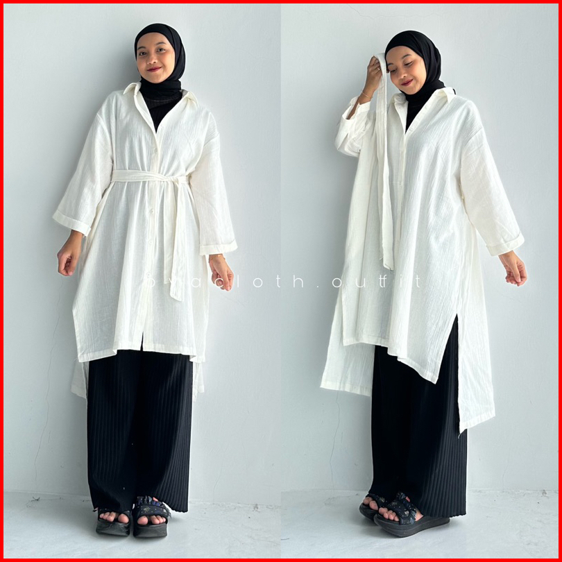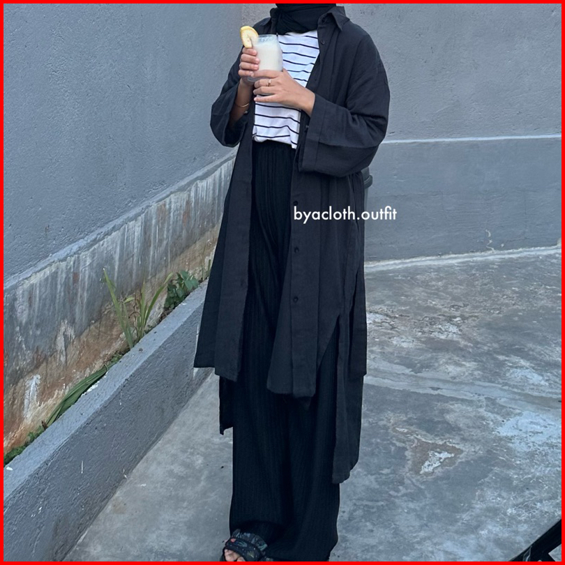 Byacloth - Yuka Tunik Kemeja Linen Oversize - Kemeja Crinkle Basic Oversize Atasan Wanita Lengan Panjang - Bumil Busui F
