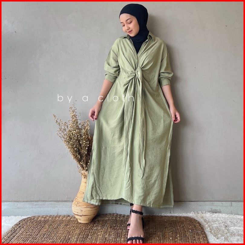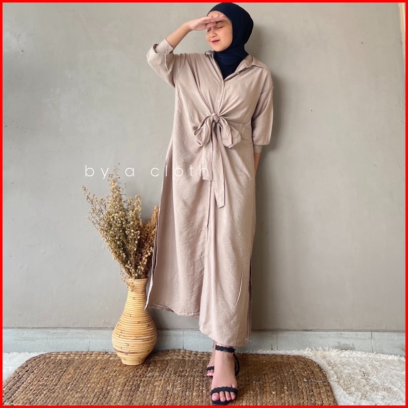 Chacha Dress Lilit Linen - Midi Dress - Linen Tunik - Gaun Pesta - Gamis Kondangan - Shirt Dress - Dress Wanita - By A C