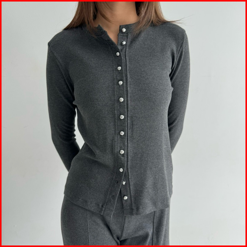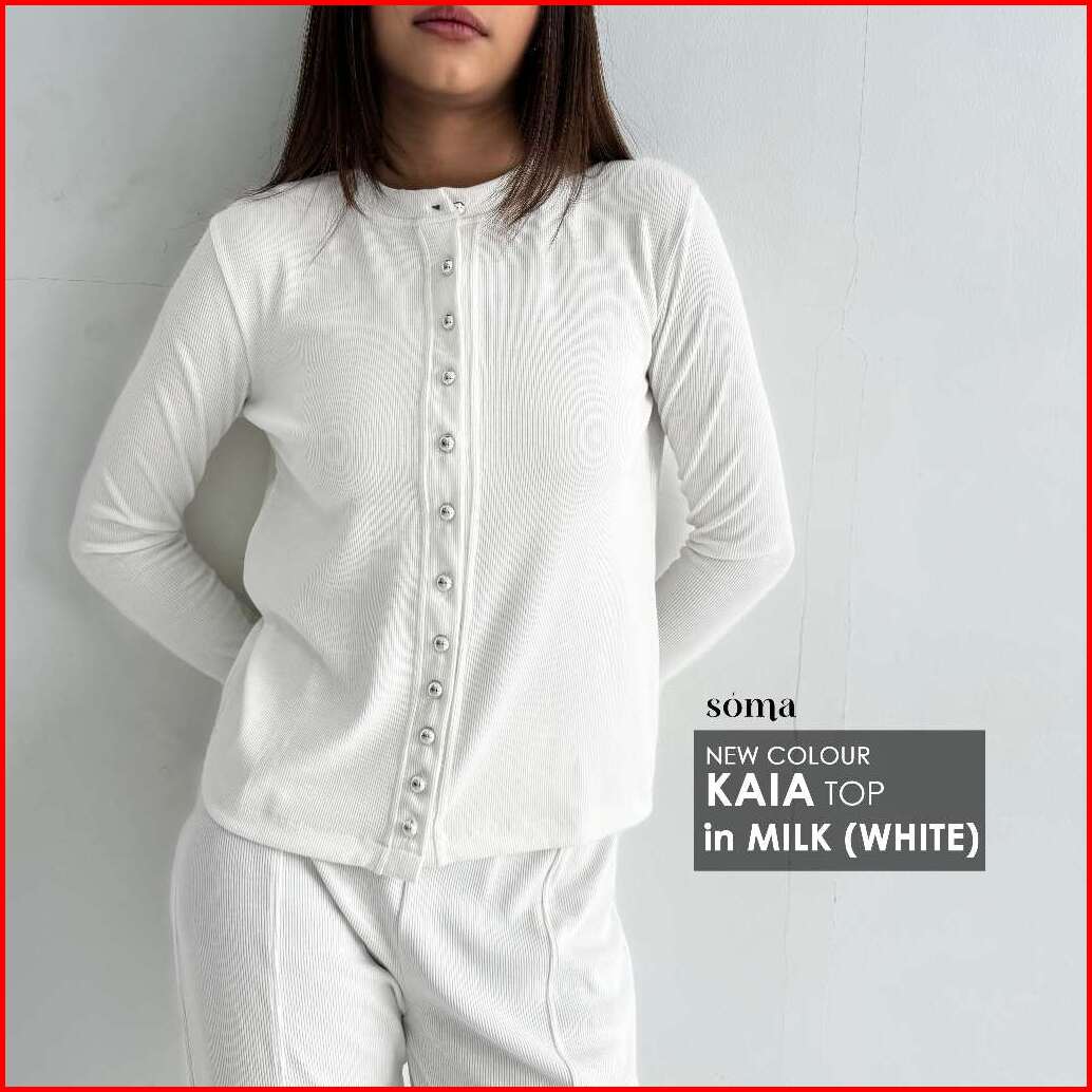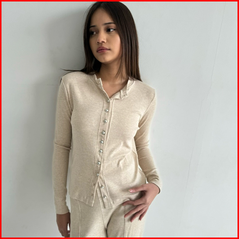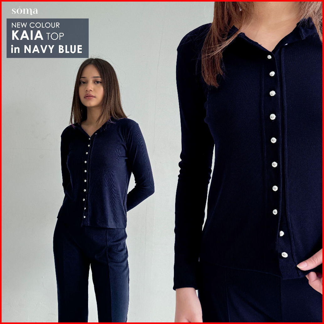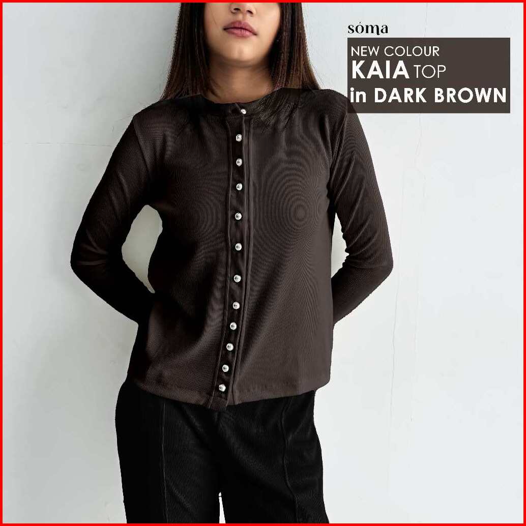 Kaia Top Atasan Knit Wanita Lengan Panjang Basic Korean Top Summer Baju Knit Kancing Rib Wanita Long Sleeve Soma