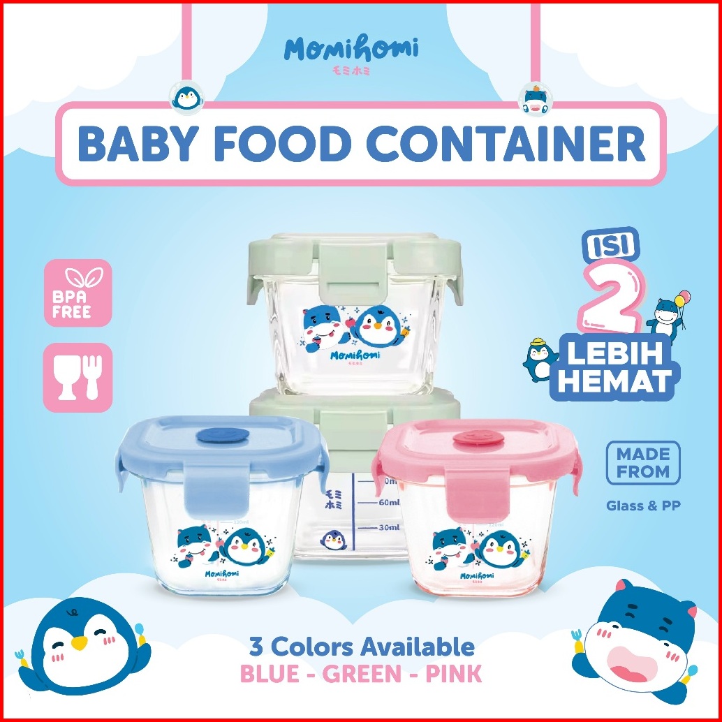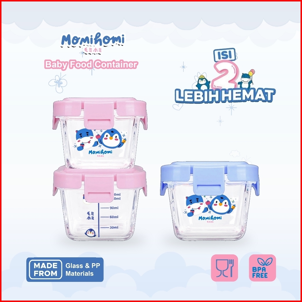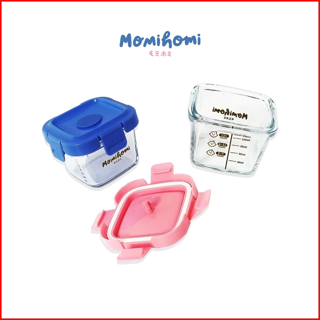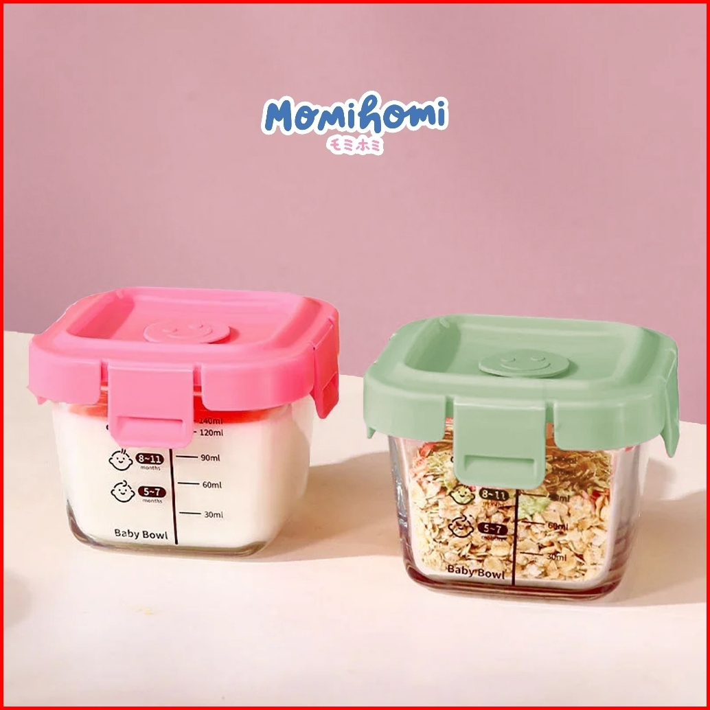 Momi Homi Authorized Baby Food Container Glass 3003 Tempat Penyimpanan Makanan Bayi Mpasi Food Container Bahan Kaca 170m