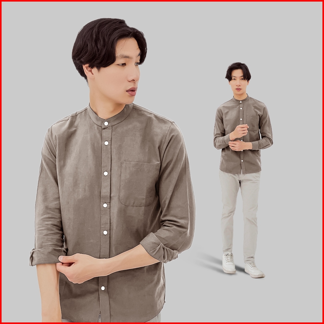 Schouten Kemeja Pria Sanghai Panjang Linen Khaki