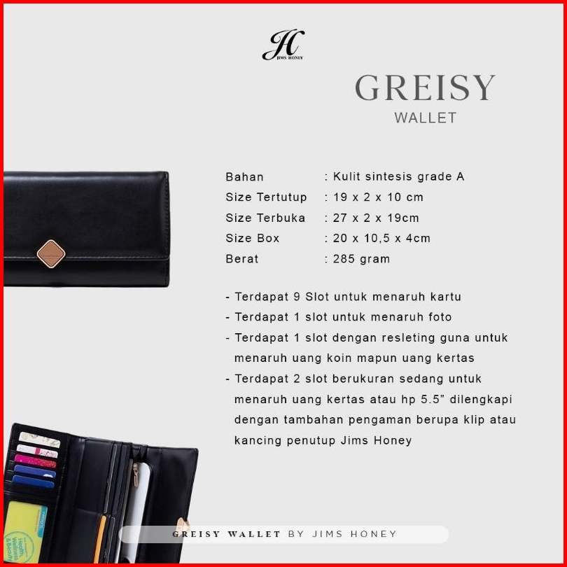 Jims Honey Greisy Wallet Ori Dompet Panjang Wanita Fashion Cewek Free Box