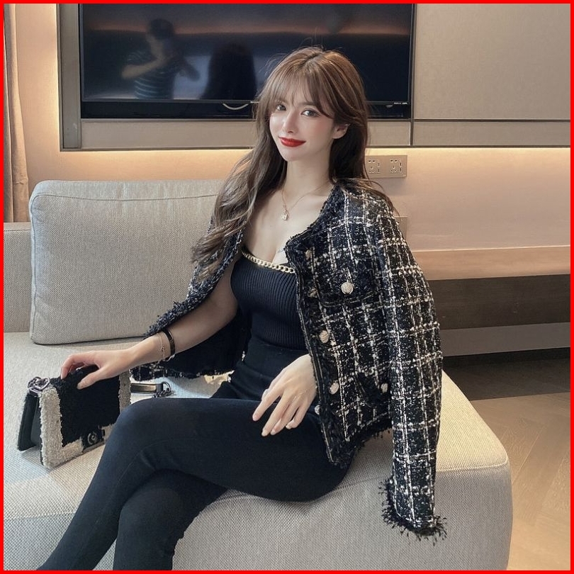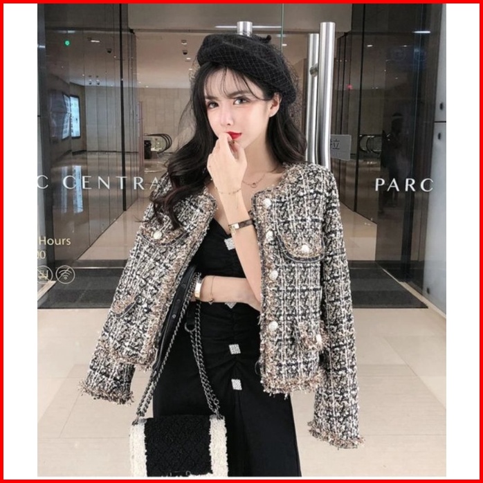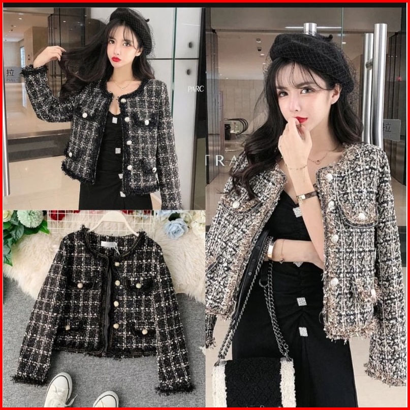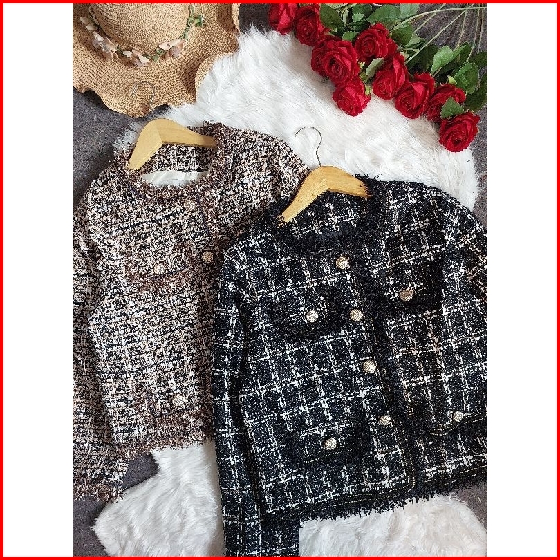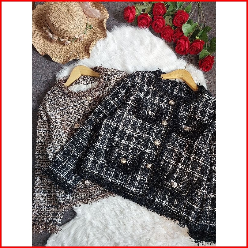 Vn Verdin Blazer Tweed Premium Crop Outer Blazer Tweed Wanita Coat Fancy Blazer Gaya Vintage Korean