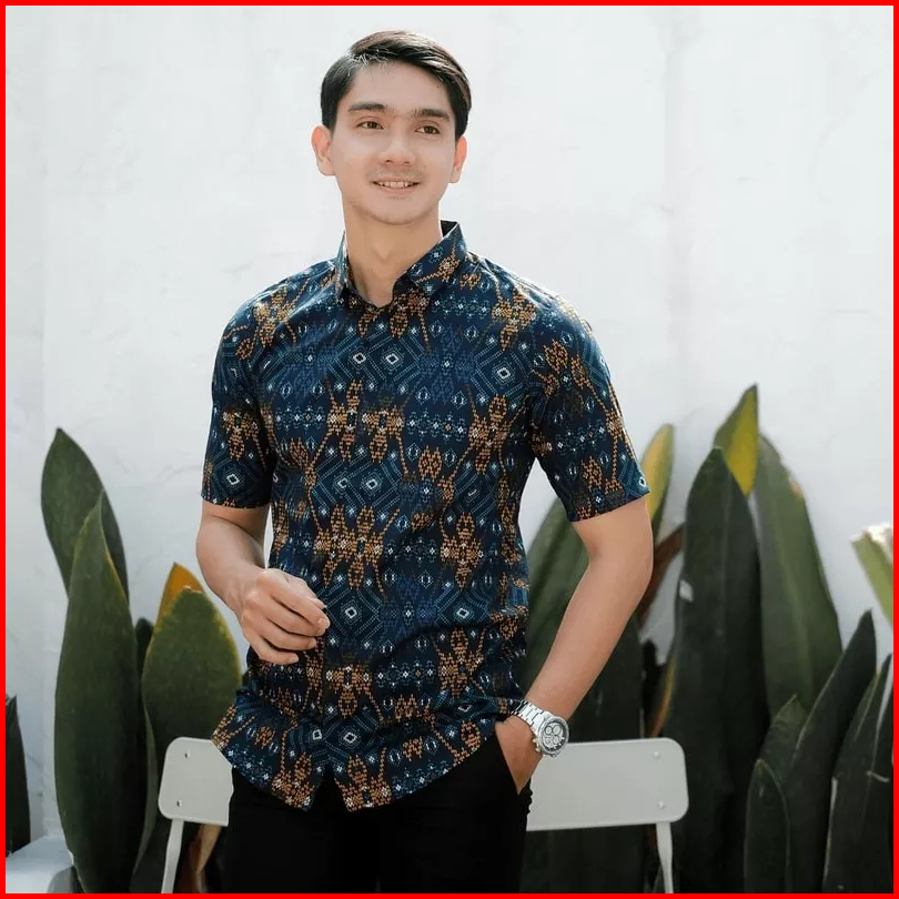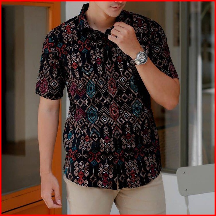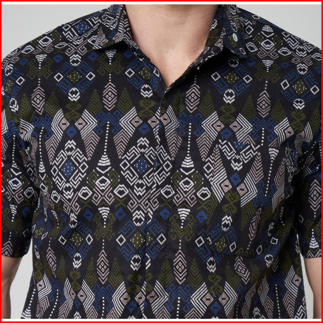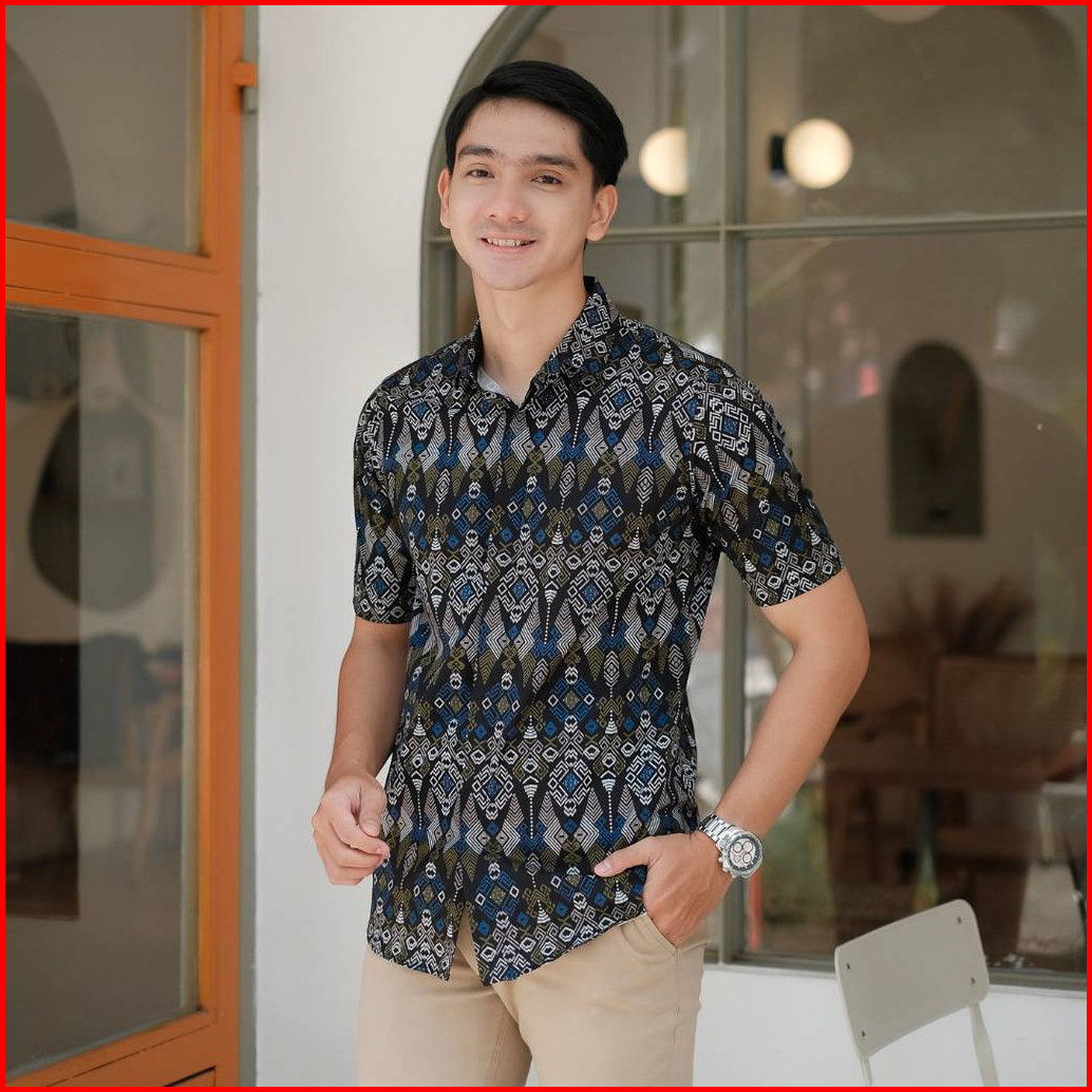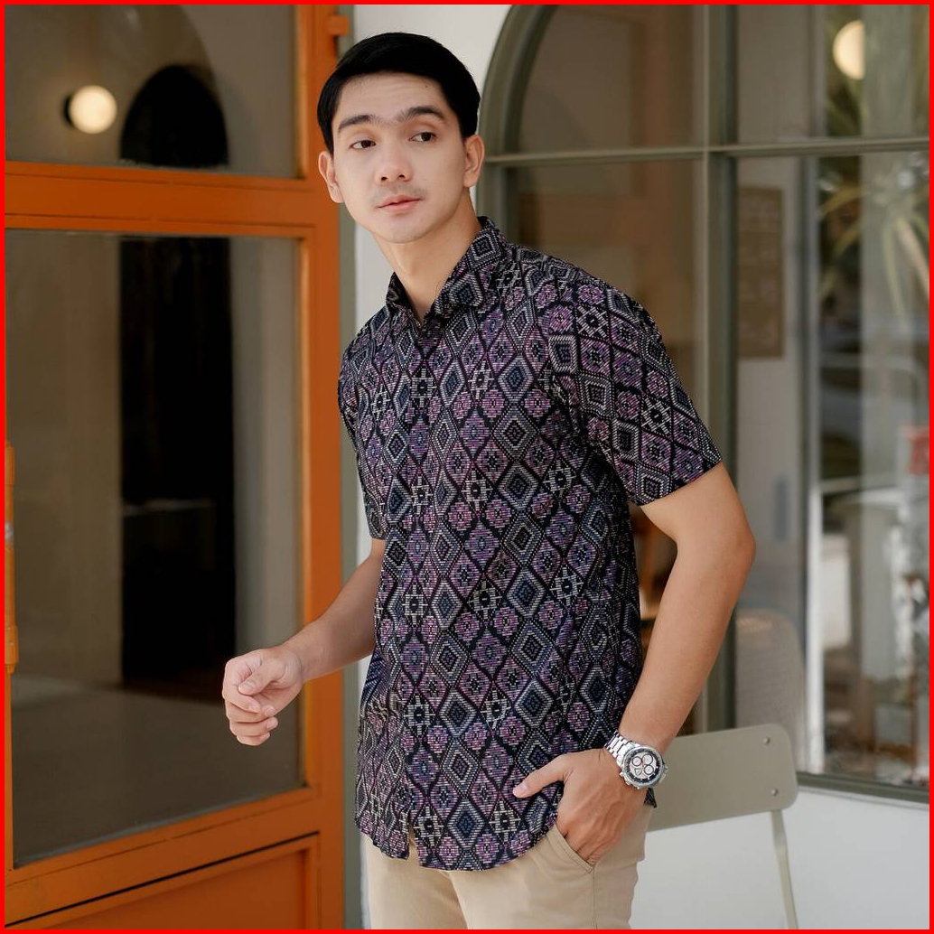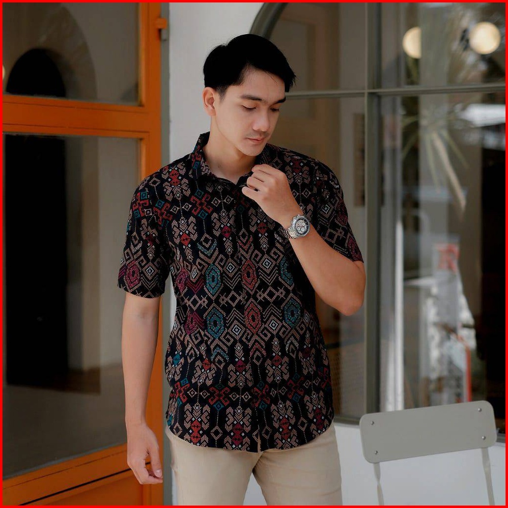 Credomenstore Kemeja Batik Pria Lengan Pendek Cowok Premium Slimfit Modern Songket Hitam