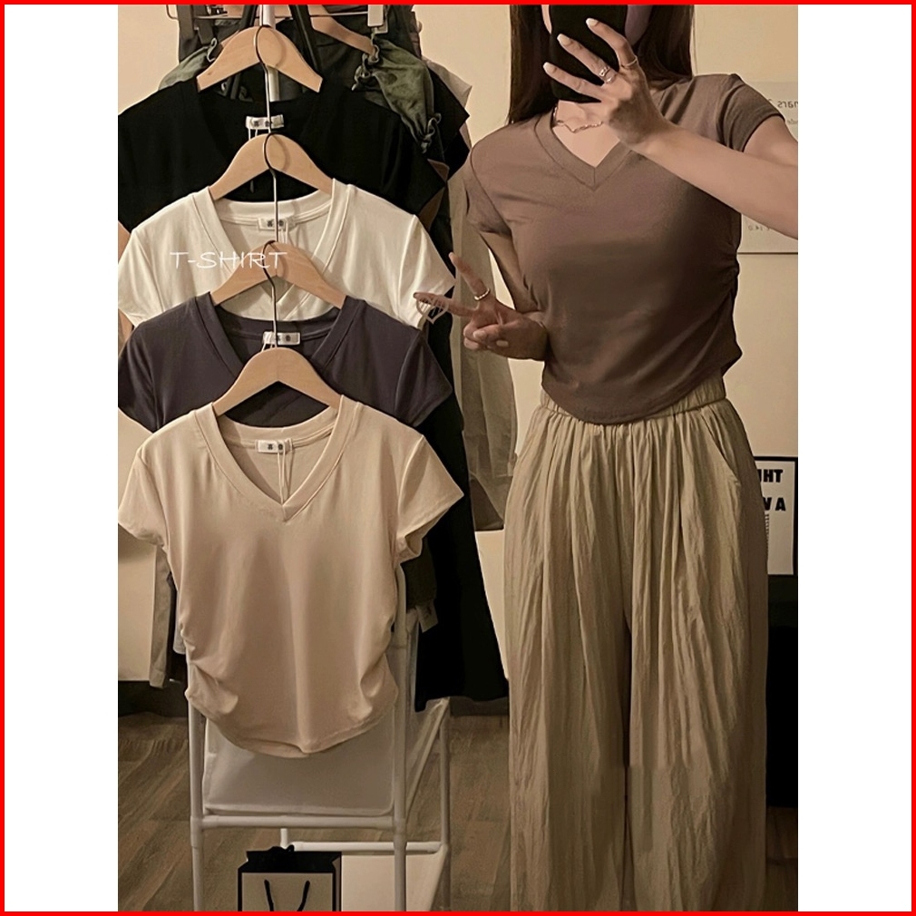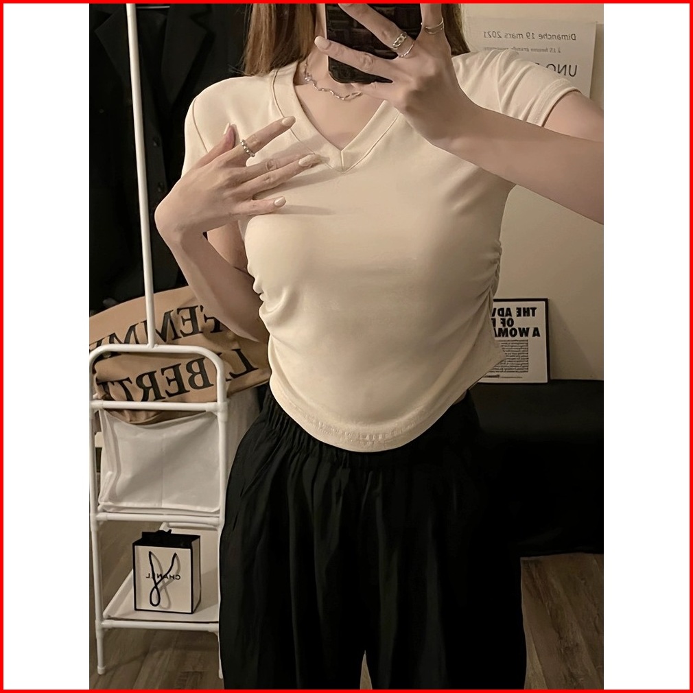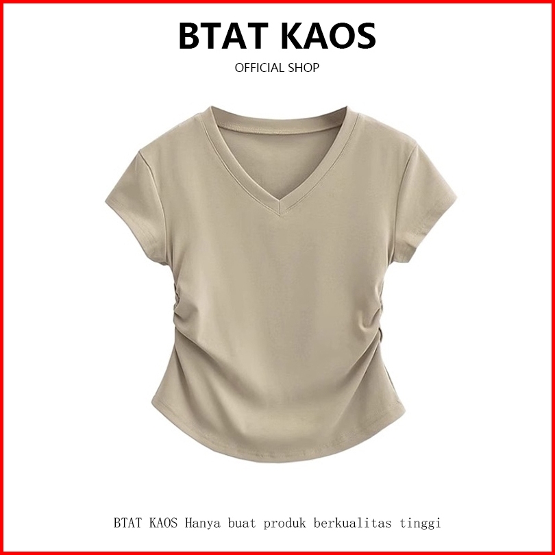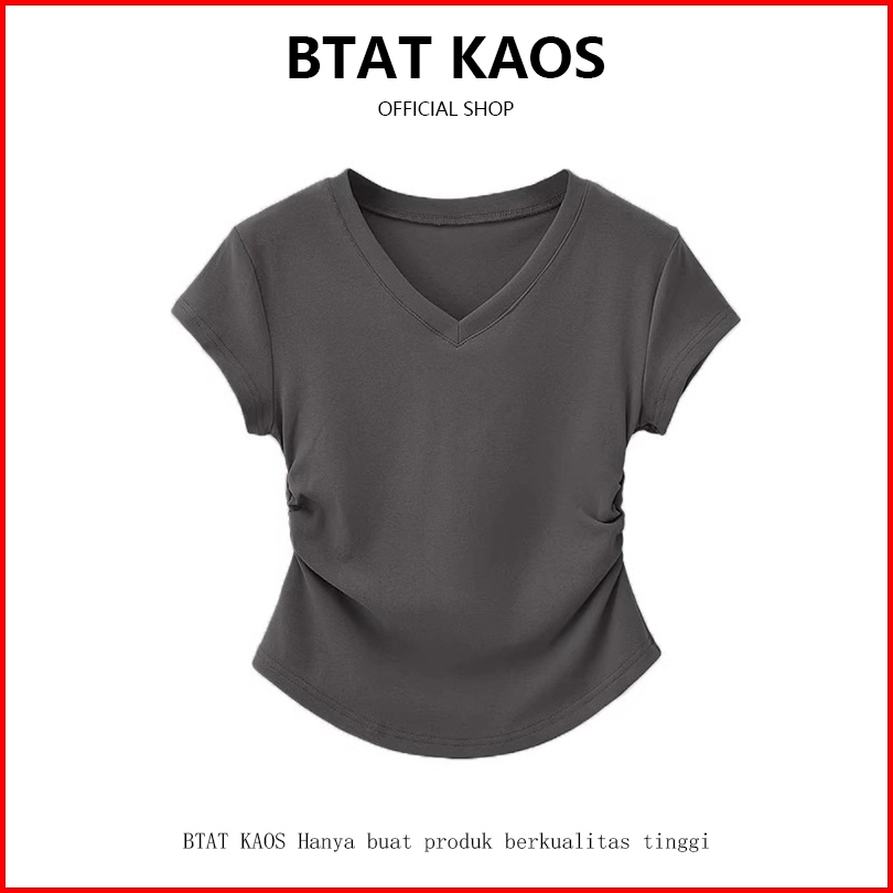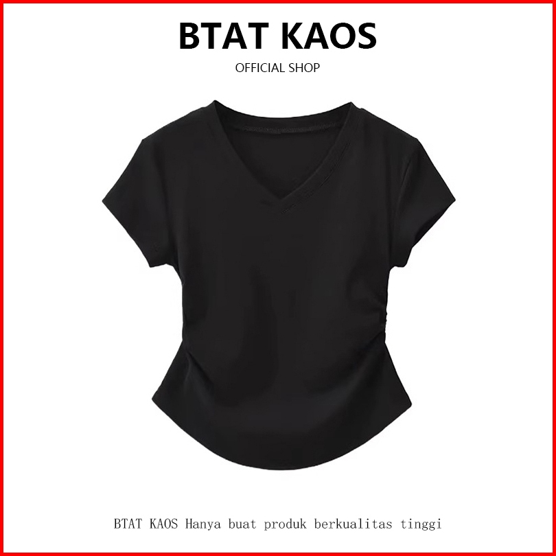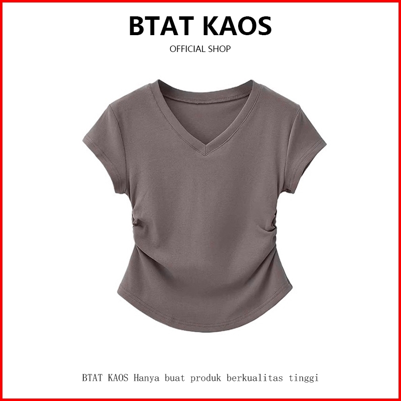 Btat Atasan Crop Kerah V Dasar Warna Polos Crop Top S M L Xl Kaos Crop Wanita Korea