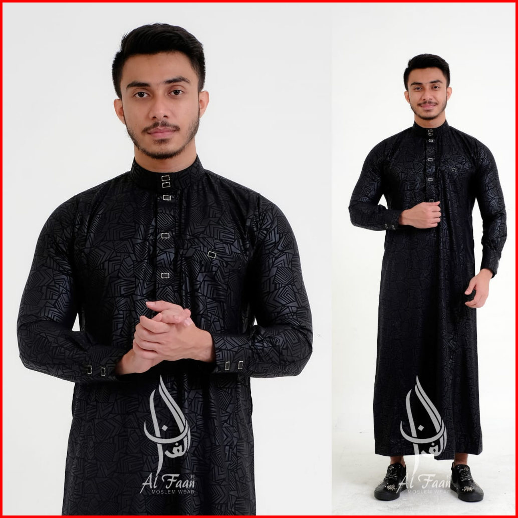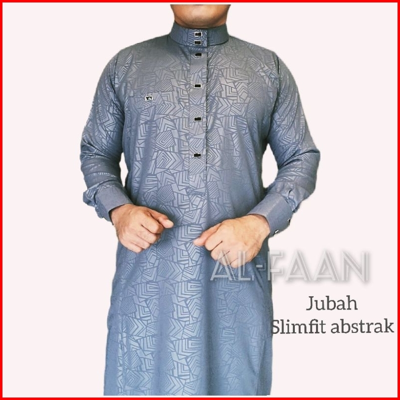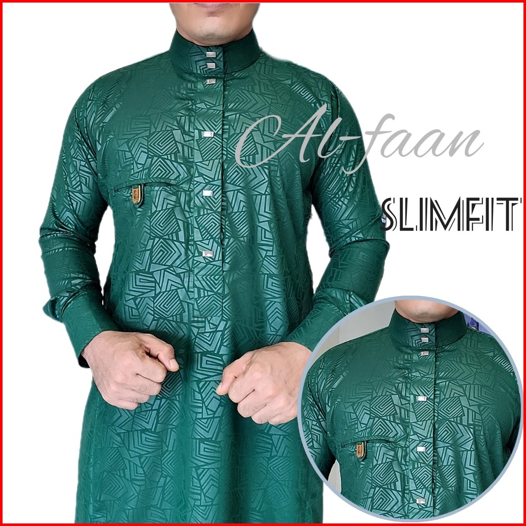 Jubah Gamis Pria Slimfit Jubah Pria Muslim Pria Busana Muslim Jubah Alfaan Motif Emboss Alzan