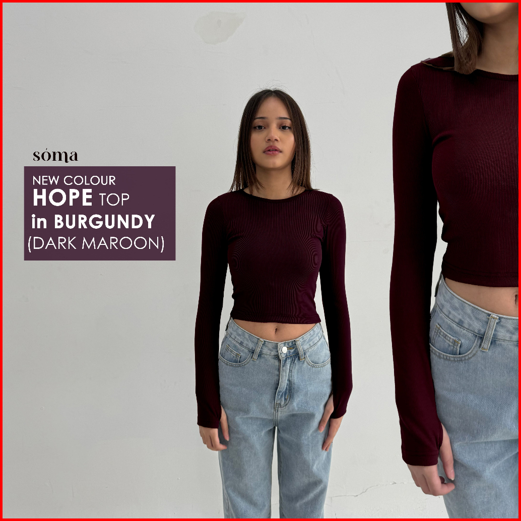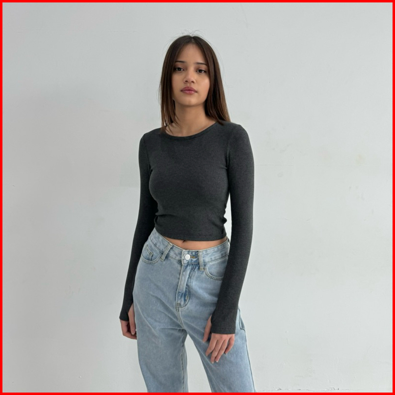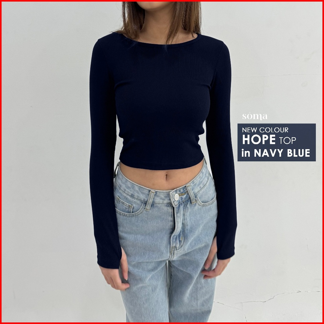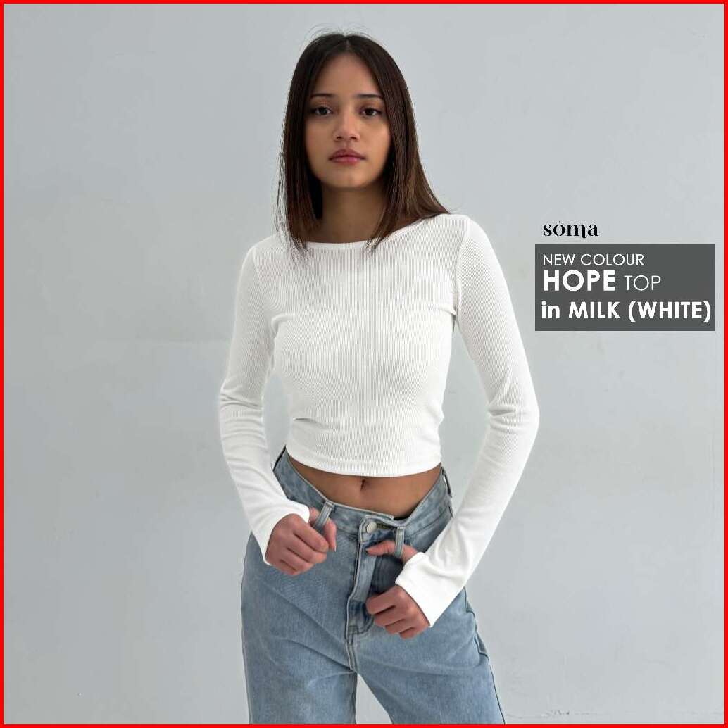 Hope Top Atasan Knit Wanita Korean Basic Top Baju Summer Knit Rib Wanita Lengan Panjang Crop Long Sleeve Soma