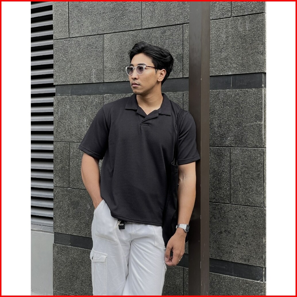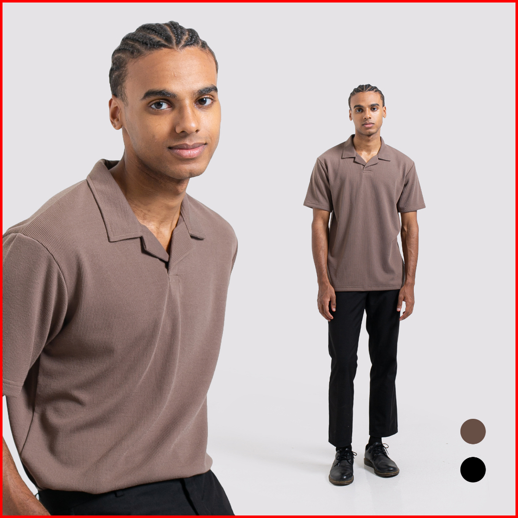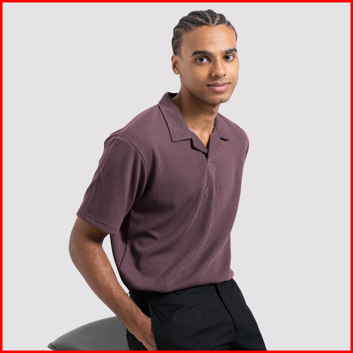 Schouten Polo Rogue Knit Revere Collar Textured Strip - Kaos Polo Pria Premium Pendek