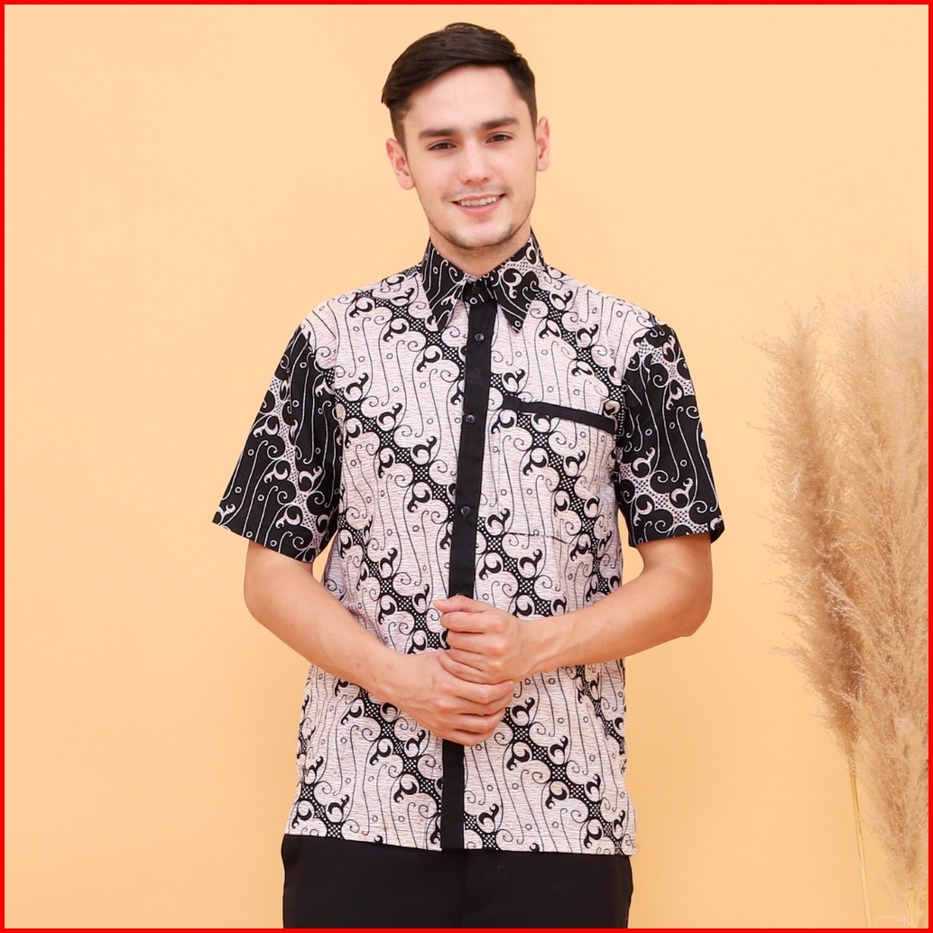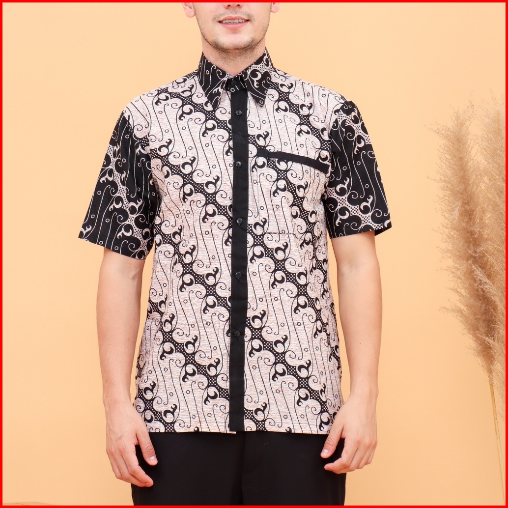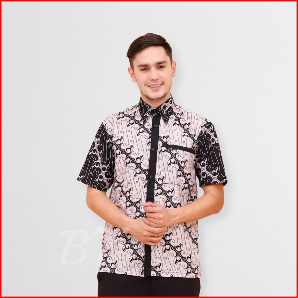 Batik Trusmi Hem Kemeja Batik Pria Lengan Pendek Motif Parang Hitam Dng Untuk Kerja