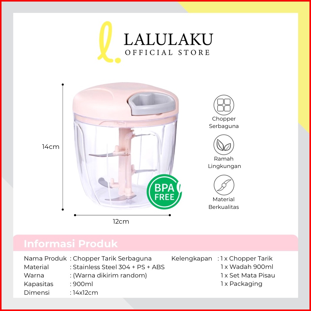 Lalulaku Chopper Warna Besar Blender Tangan Tarik Manual Bumbu Dapur