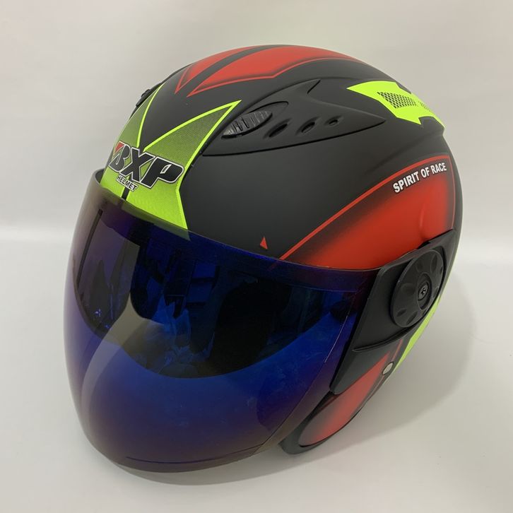 Helm Vision Monsta X13 Merah Kuning Doff - Kaca Iridium Silver Pelangi Rainbow - Helm Vision - Helm Dewasa - Helm SNI -