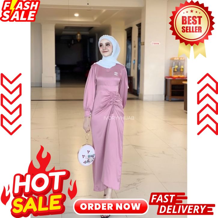 Aileen Dress Dress Satin Kondangan Gamis Wanita Elegan Dress Serut Kekinian Baju Gamis Remaja Outfit Kondangan
