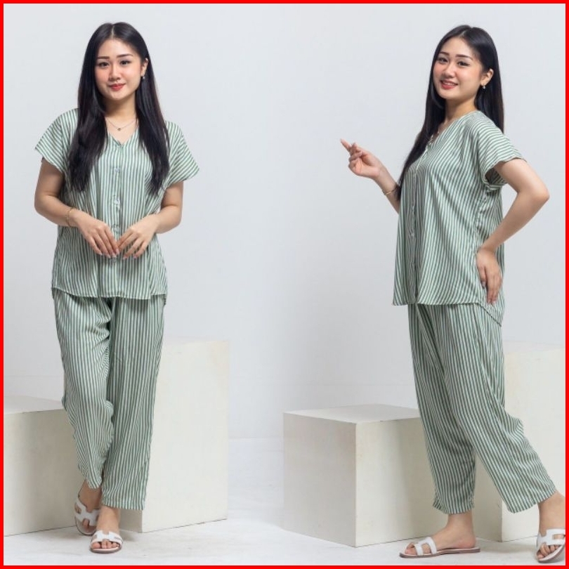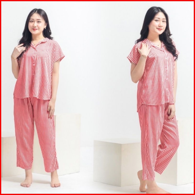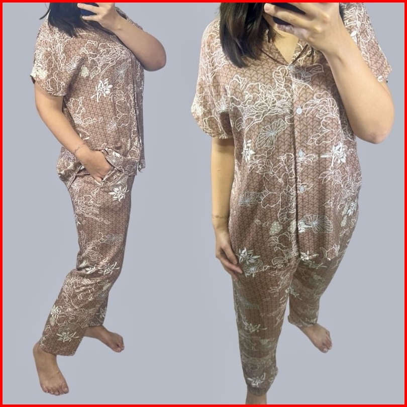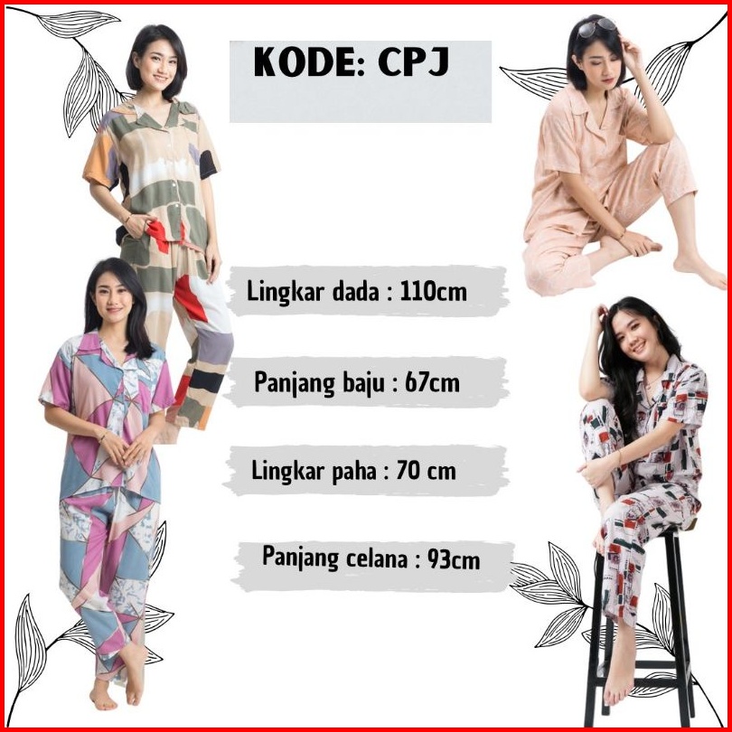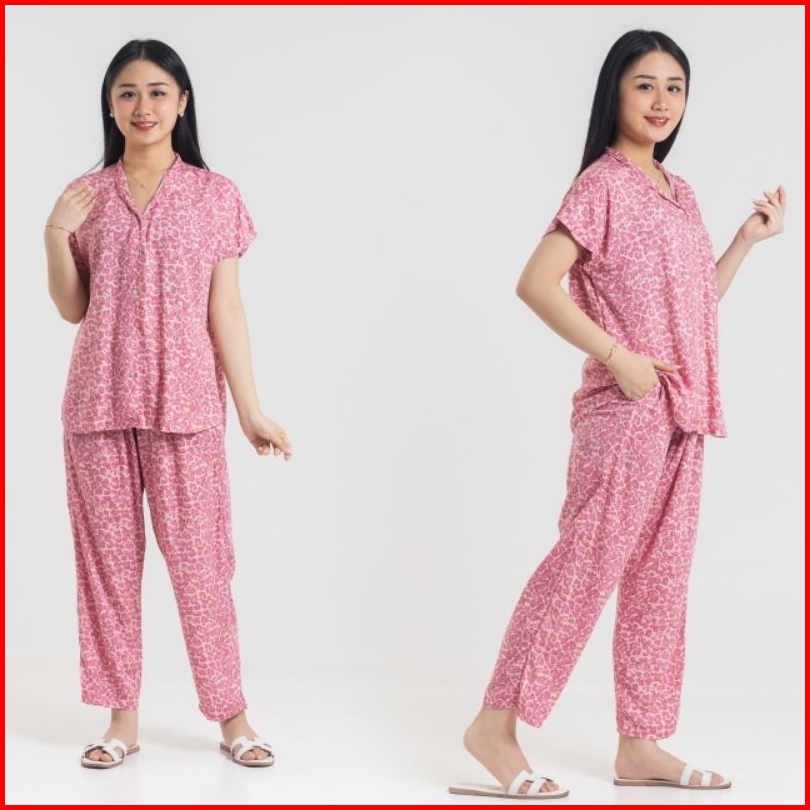 Piyama Wanita Rayon Premium Remaja Busui Kancing Depan Celana Panjang S M L Xl Motif Polos