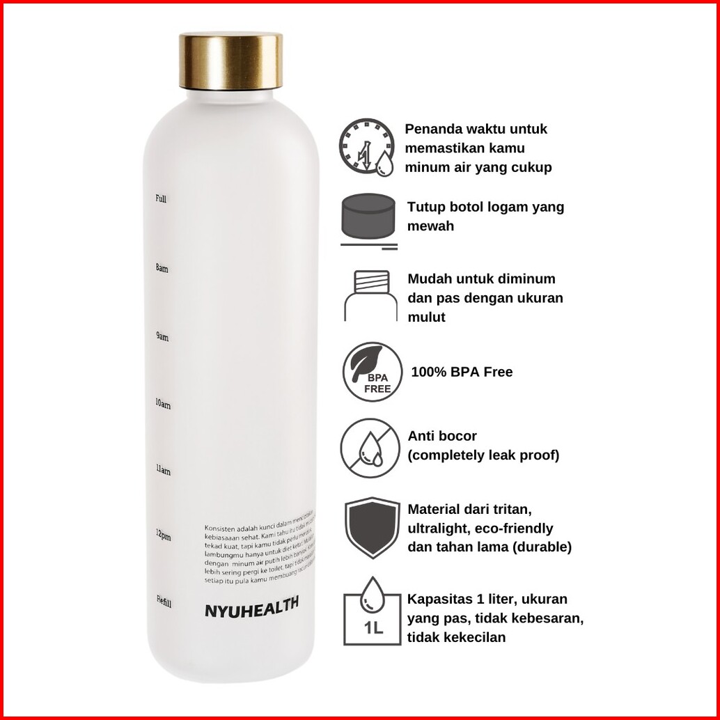 Nyuhealth Botol Minum Penanda Waktu Bpa Free Infused Water Tritan 1 Liter