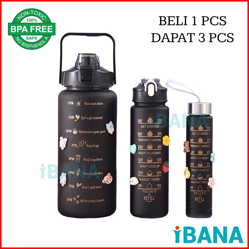 Ibana Hu01 Botol Minum Beranak 3 In 1 3pcs Free Sticker 2d-3d Sedotan Botol Minum Viral 2liter 1liter 300ml