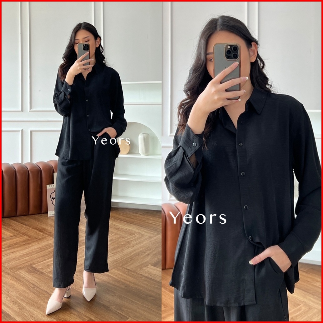 Yeors - Zoya Premium Crinkle Set - Baju Atasan Dan Celana Wanita Murah Berkualitas - Korean Loose Pants Trousers Wanita