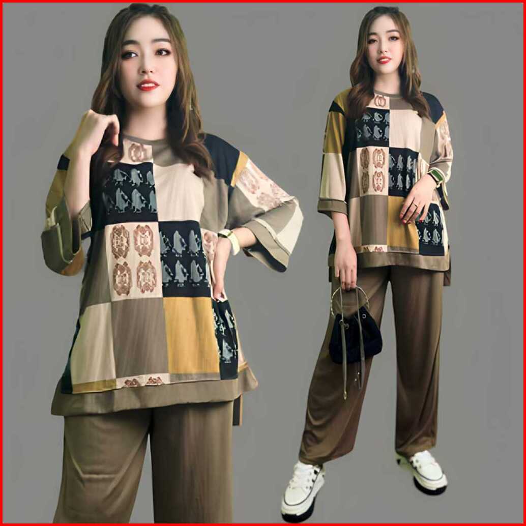 Kiaria Ld 120 Setelan Wanita Celana Dan Atasan Pinguin Oversize Wanita Baju Kantong Karet Kaos Dewasa Motif