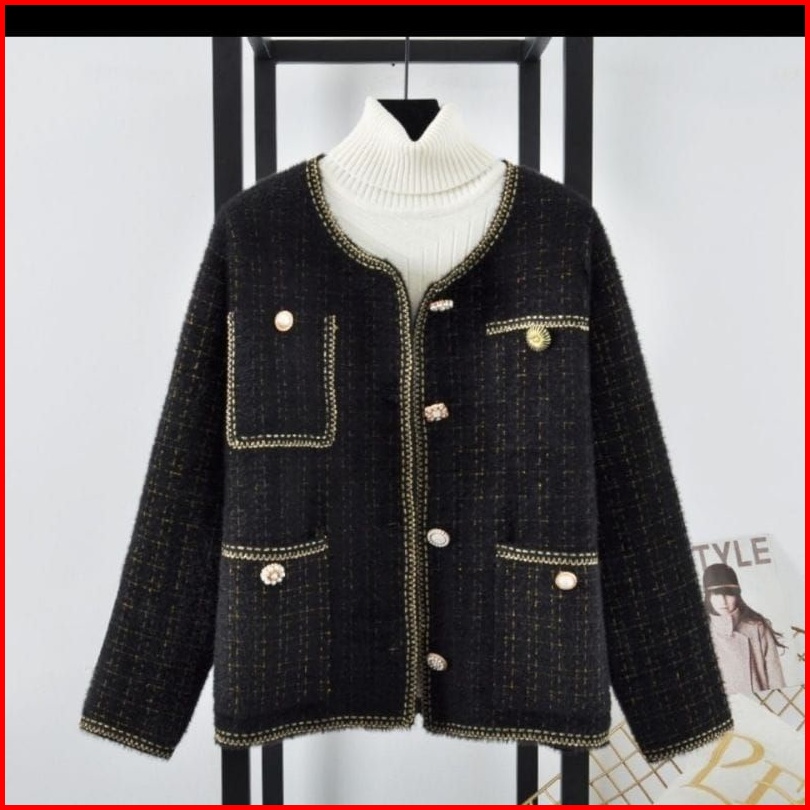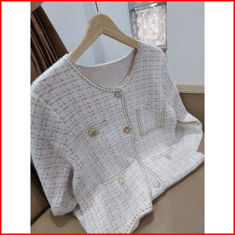 Vn Allice Luxury Furry Blazer Knit Oversize Knitwear Cardi Oversize Outer Knit Bulu Rajut Premium
