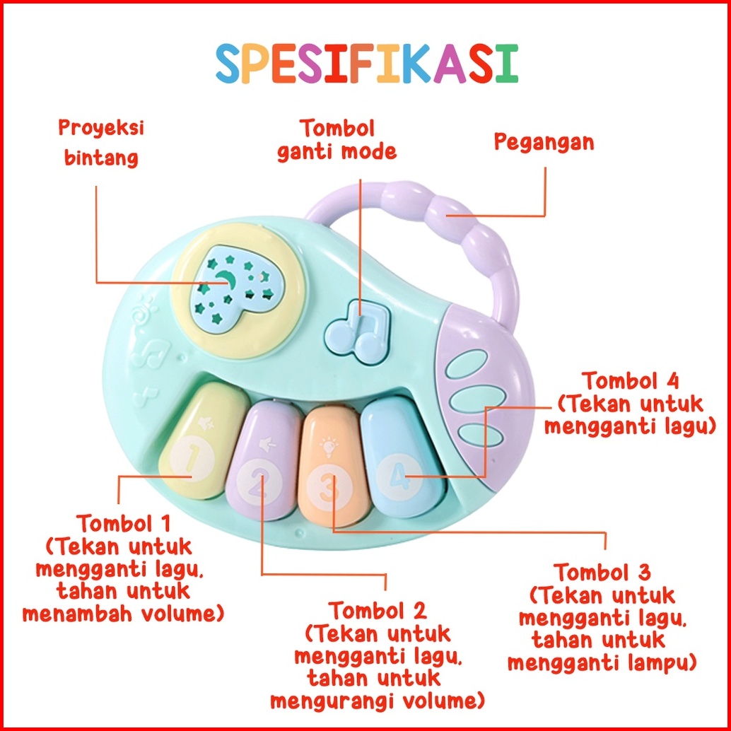 Kids Land Mainan Piano Bayi Rattle Dengan Musik Dan Lampu Model Moonstar