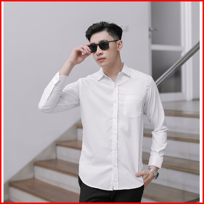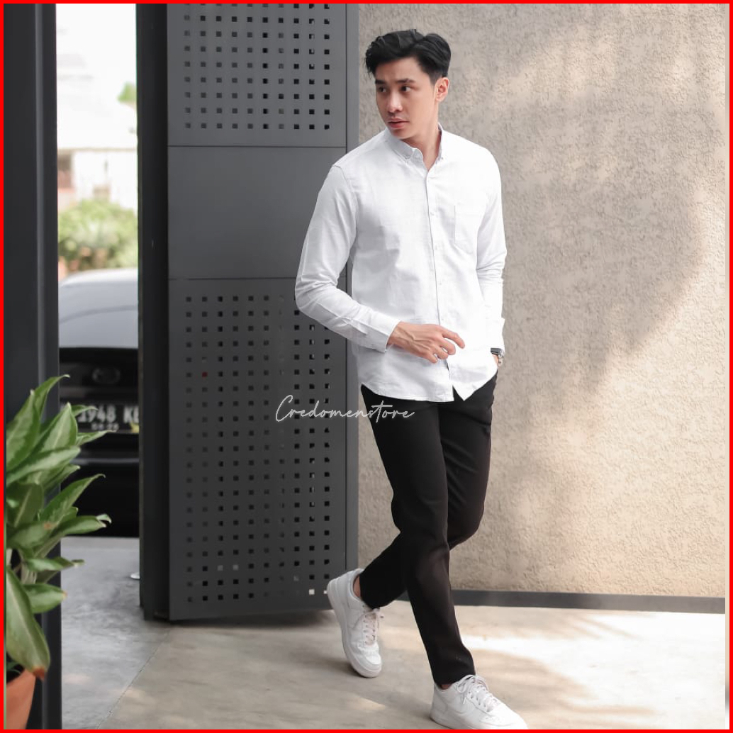 Credomenstore Kemeja Pria Lengan Panjang Polos Putih Slimfit